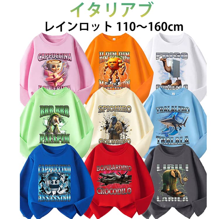 スウェット イタリアンブレイン ロット Italian brainrot 子供服 長袖 秋服 トゥントゥントゥンサフールスウェット タタタタサフール 長袖Tシャツ キッズ ト イタリアンブレインロット