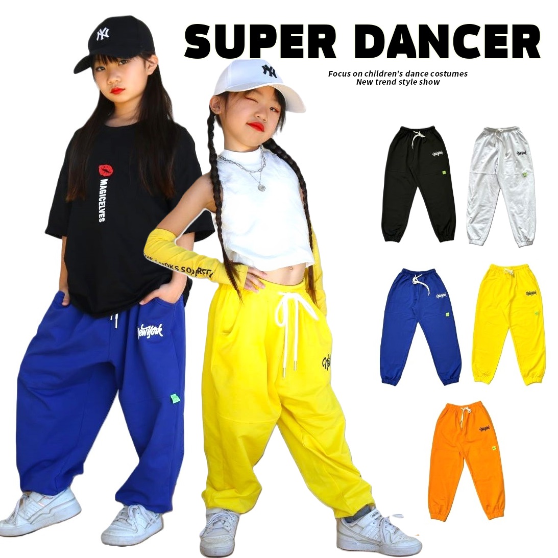 ダンス衣装 パンツ ヒップホップ キッズダンス衣装 レッスン着 男の子 ガールズ ダンスパンツ ダンスズボン スウェットパンツ 青 オレンジ 黒 白 黄色