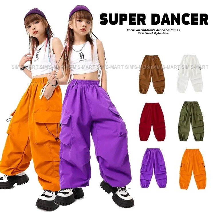ダンスパンツ ヒップホップ キッズダンス衣装 カーゴパンツ ダンスウェア 子供ダンス服 男の子 ガールズ ダンス衣装 キッズ K-POP 韓国 ダンスズボン オレンジ 紫 茶色 カーキ 白 赤