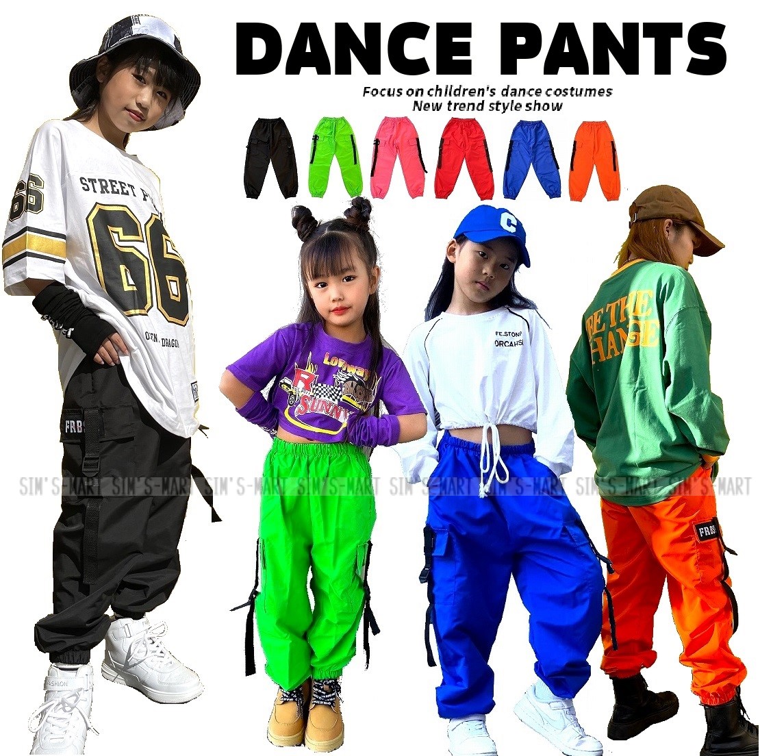 ダンス衣装 パンツ キッズ ヒップホップ キッズダンス衣装 カーゴパンツ ズボン レッスン着 男の子 ガールズ レディース 大人 黒 赤 黄緑 ピンク 青 ホワイト 韓国 K-POP オレンジ