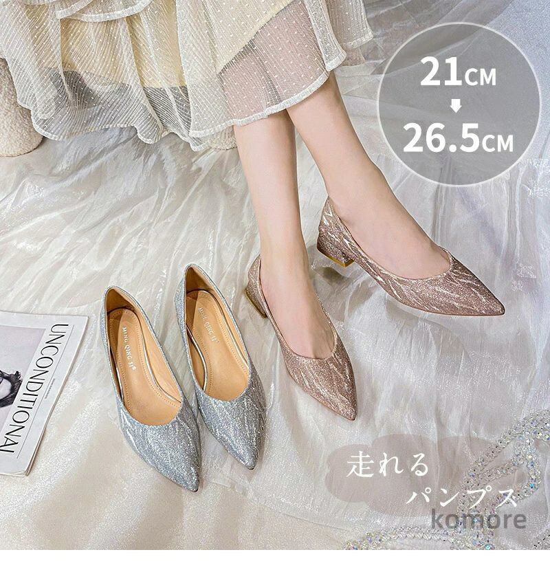 21 26.5cm シャンパン シルバー 発表会 2次会 ドレス フォーマル オフィス 脱げない アウトドア パンプス ンテッドトゥ 痛くない
