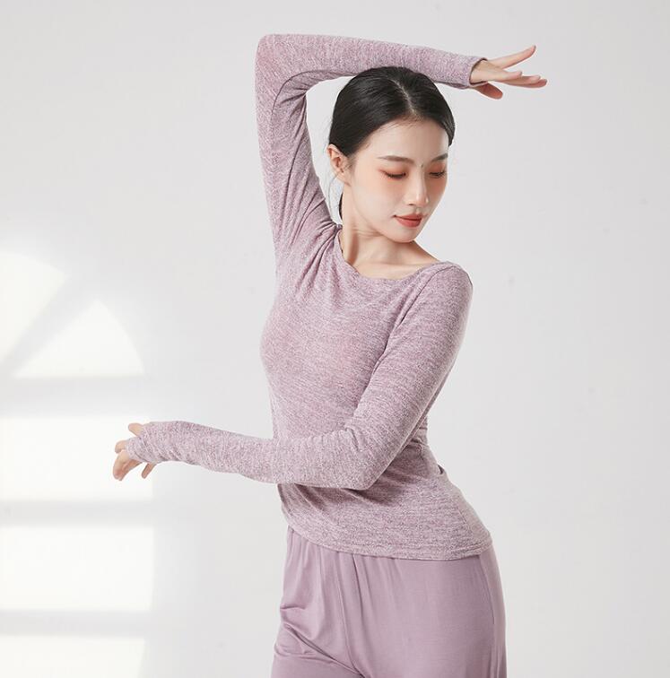 ダンス衣装長袖トップスTシャツチャイナ服バレエヨガウエアオリエンタル練習着 レディース古典舞踊団体ウエア動きやすいヨガ