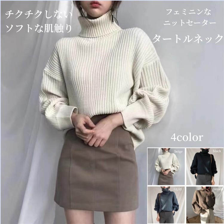 ニット プチハイネック レディース 秋 冬 秋冬 トップス 黒 白 半袖 チュニック セーター ハイネック ブラック ホワイト 大人 20代 30代 40代