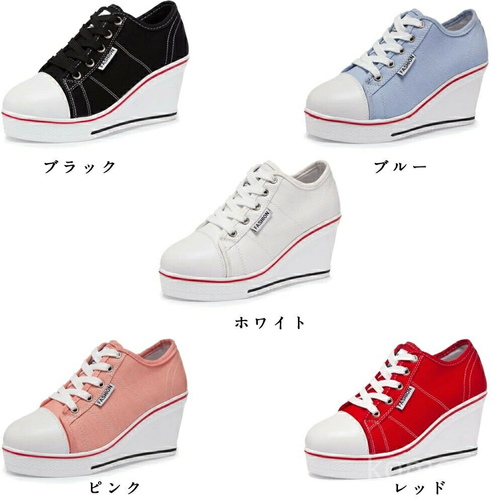 シューズキャンバス スニーカー レディース ヒールスニーカー キャンバス素材 ウェッジソール ハイヒール カジュアルシューズ