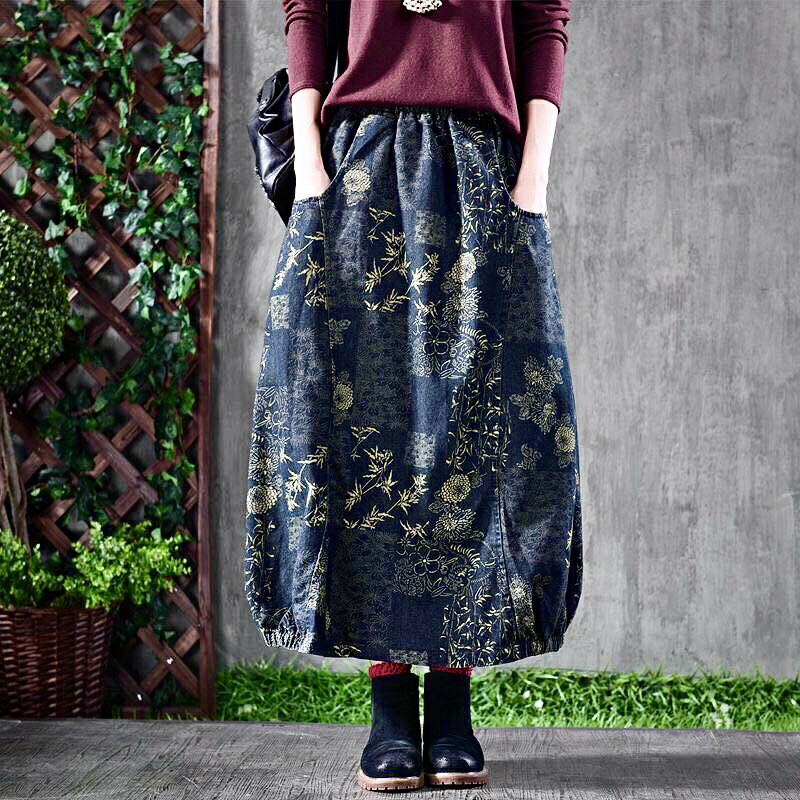 デニムロングスカート デニムスカート 母の日 デニム 柄物 ロングスカート ロングデニムスカート レディースデニムスカート 春秋 秋服 春 秋 オールシーズン レディース ゆったり ウエスト スカート