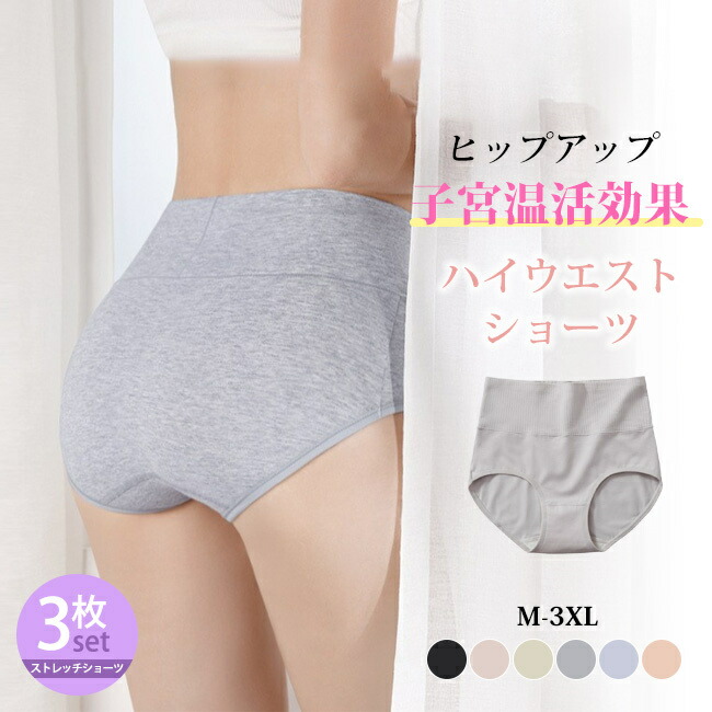 3枚セット ショーツ レディース ハイウエストショーツ 春新作 下着 冷え症対策 腹巻きショーツ ストレッチ インナー 深ばき 3D構造 おなかすっぽり 引き締め 子宮温活