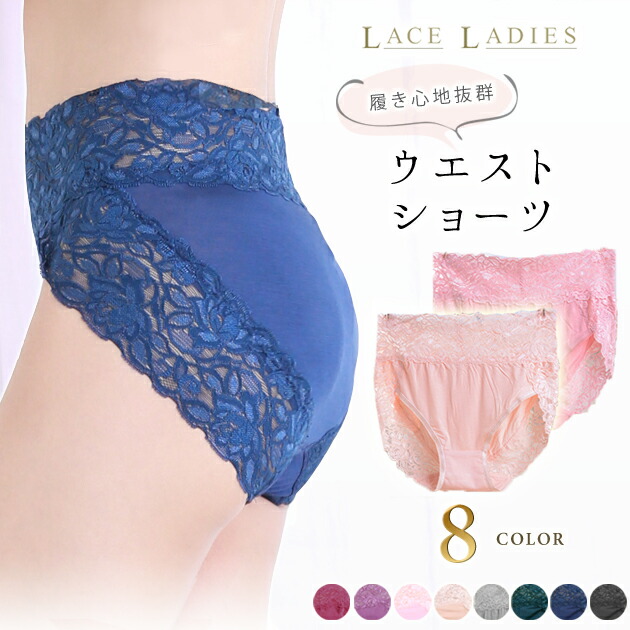 ウエストレース ショーツ インナー ブリーフ 下着 無地 サポート ヒップアップ ママ 産後 補正 レディース 単品 女性 パンティー 花柄レース めくれ防止 ランジェ ジャストウエスト
