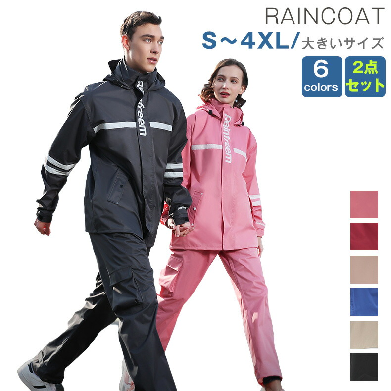 レインスーツ レインコート レインウェ アウトドア ウェア レインウェア レインウェア上下セット 人気 S M L XL 2XL 3XL ピンク レッド ライトピンク ブルー ベージュ ダークグレー