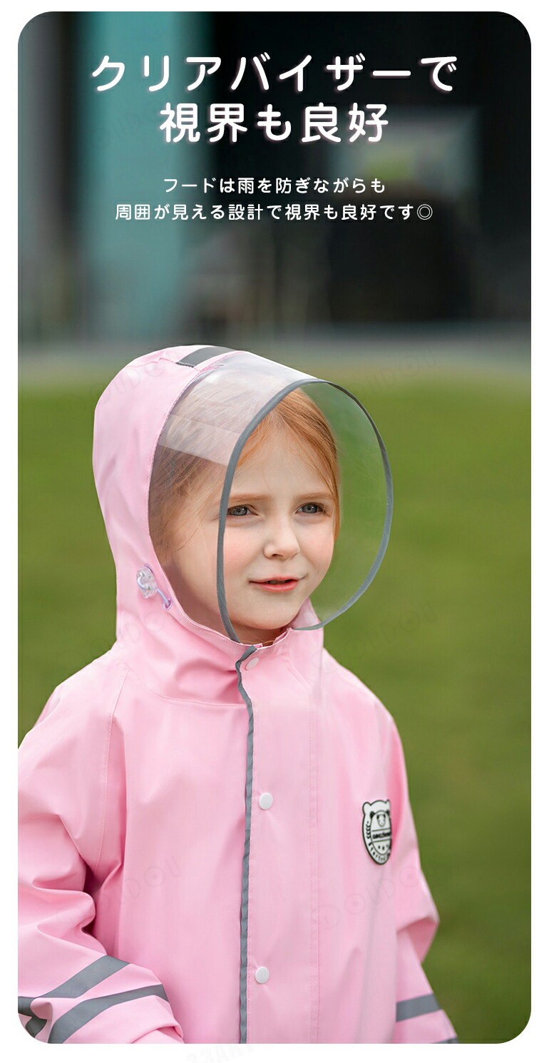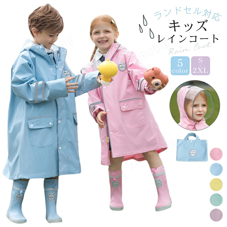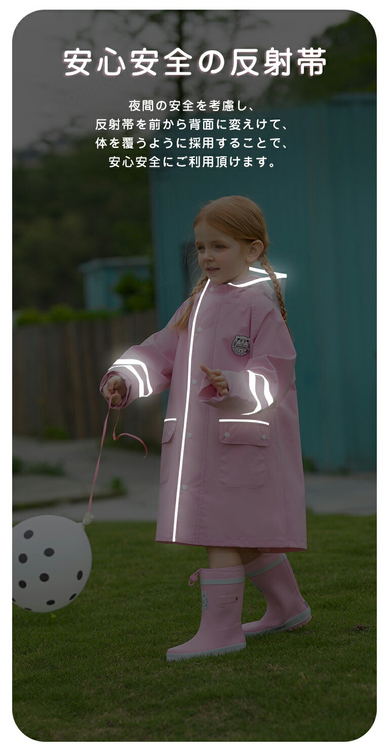 進化版 子供 レインコート キッズ ラ キッズ レインウェア 傘 レインコート 人気 ピンク ブルー イエロー グリーン パープル S(参考身長95-115cm) M(参考身長115-135cm) L(参考身長135-150cm) XL(参考身長150-165cm)