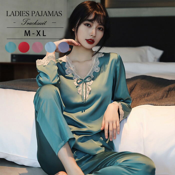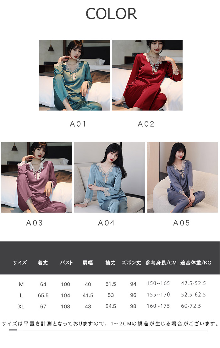 サテン パジャマ レディース ルームウ レディース ナイトウェア ルームウェア パジャマ 続々登場 M L XL A01グリーン A02ワインレッド A03ローズピンク A04ライトブルー A05ブルーグレー