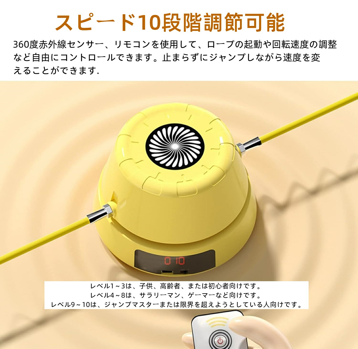 電動縄跳び なわとび 自動縄跳び機 自動回転 10段速度調整可能 有酸素運動 筋トレ タブルなわとび 自動カウント リモコン付き USB充電式 子供用 大人用 運動器具 室外 エクササイズ グッ 室内