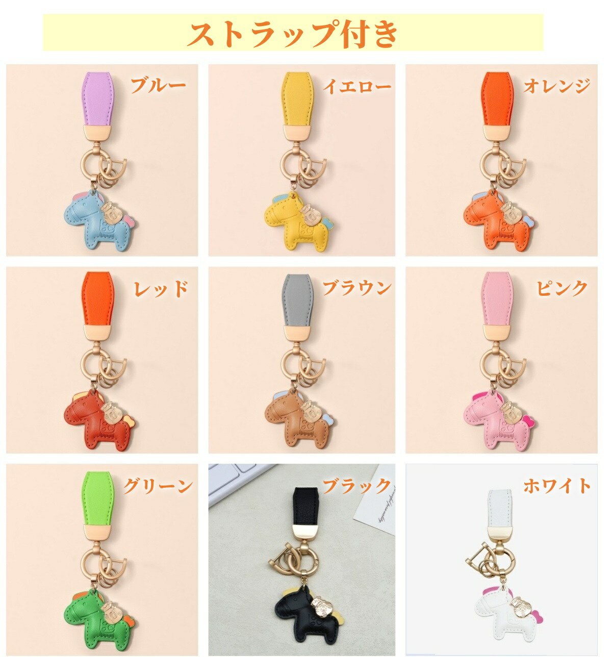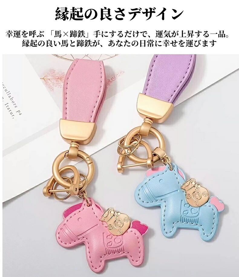 馬と蹄鉄のキーホルダー 馬モチーフ 本 財布 ケース キーホルダー キーケース 通販 ピンク ブルー ブラウン レッド オレンジ イエロー グリーン ブラック パープル ホワイト 単品 ストラップ付き