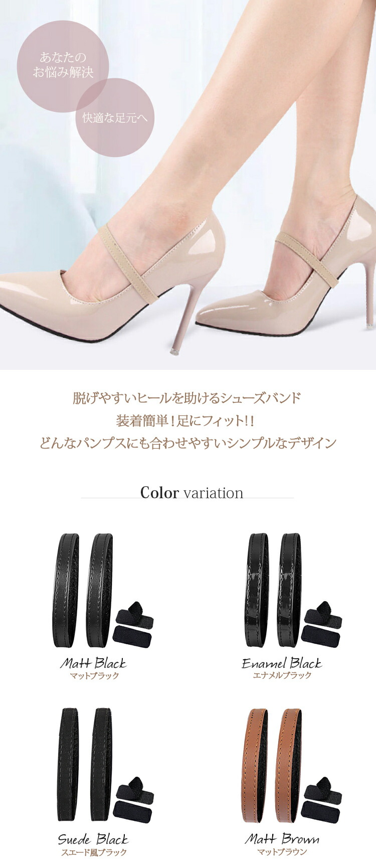 シューズバンド ミュールバンド パンプ 靴ケア用品 アクセサリ その他 通販 マットブラック エナメルブラック スエード風ブラック マッドブラウン マッドレッド マッドアプリコット スエード風ベージュ