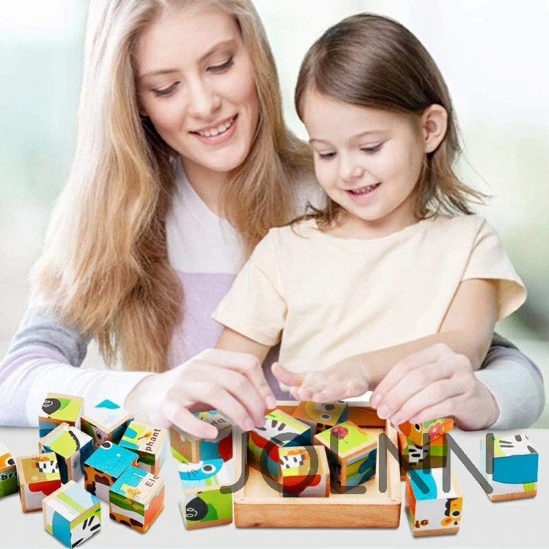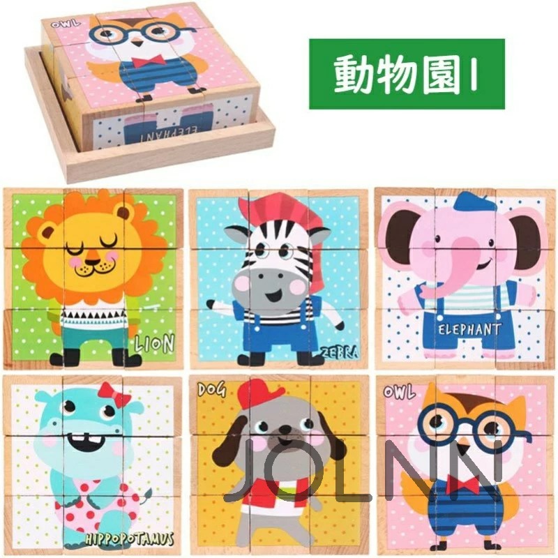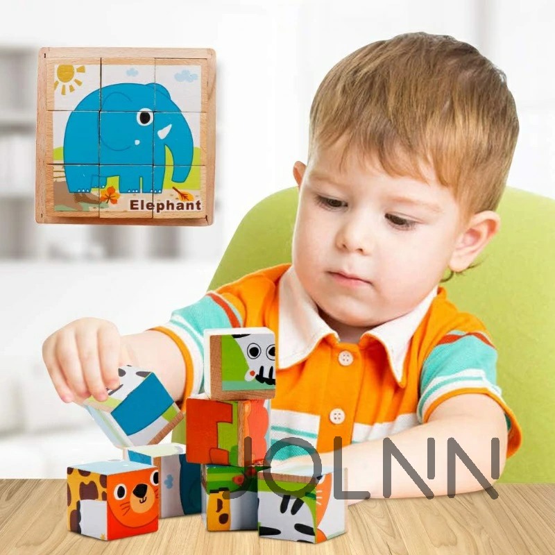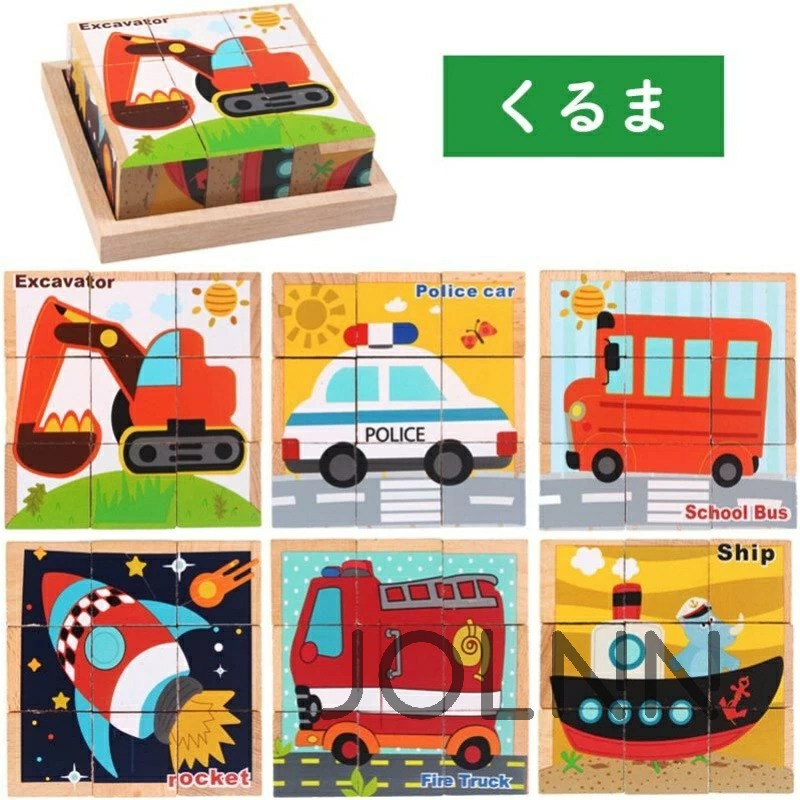キューブパズル 3D立体パズル 木製 動物園1 動物園2 海洋動物 昆虫 くるま 果物