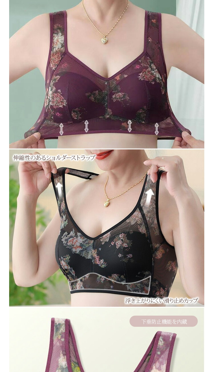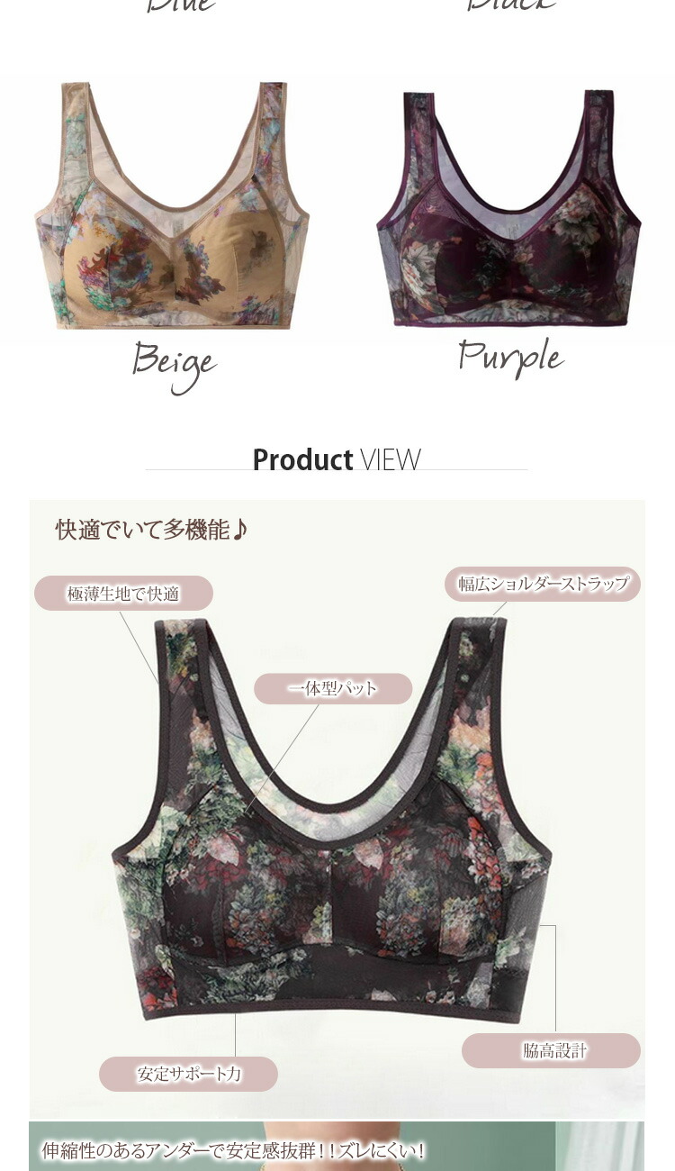 ノンワイヤーブラ ハーフトップブラ ブ レディース インナー 下着 ブラジャー 特集 M L 2L 3L 4L 5L ブラック ベージュ パープル ブルー