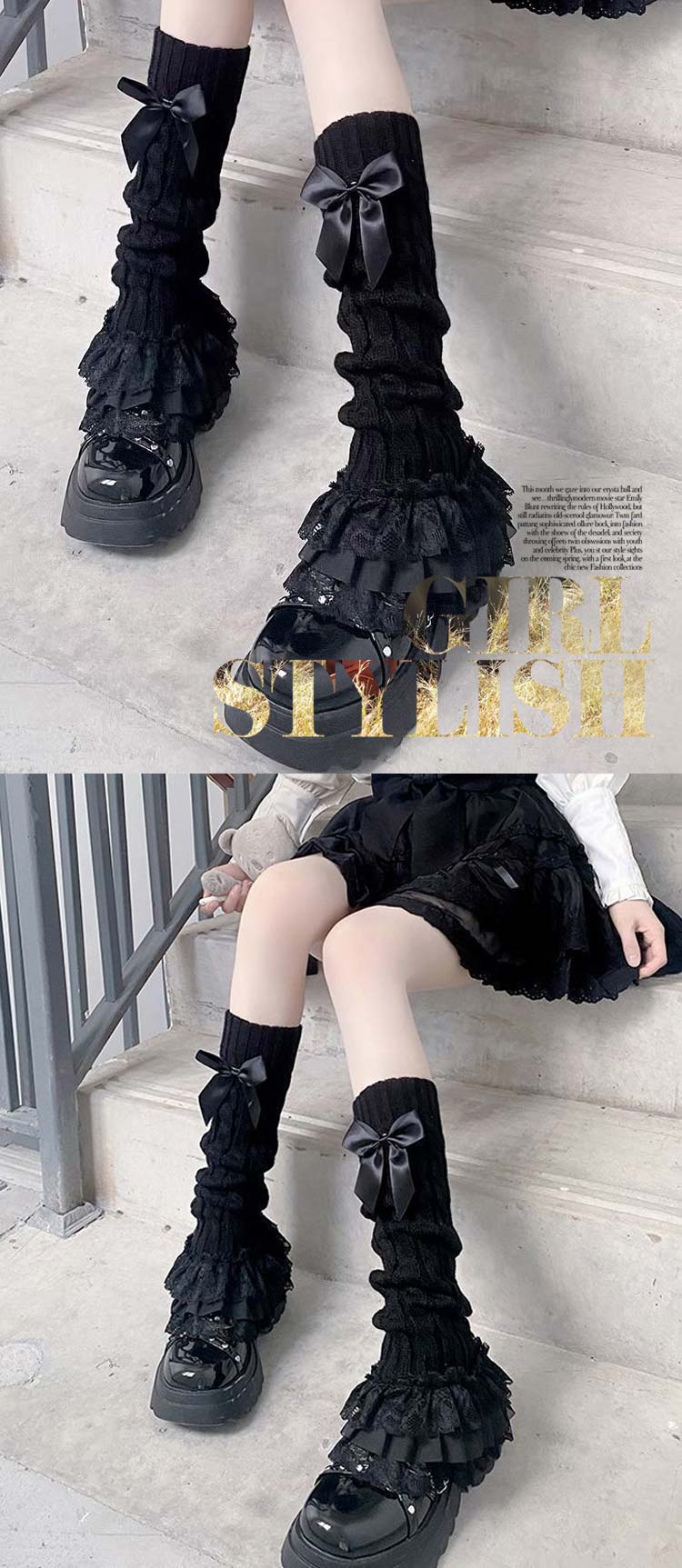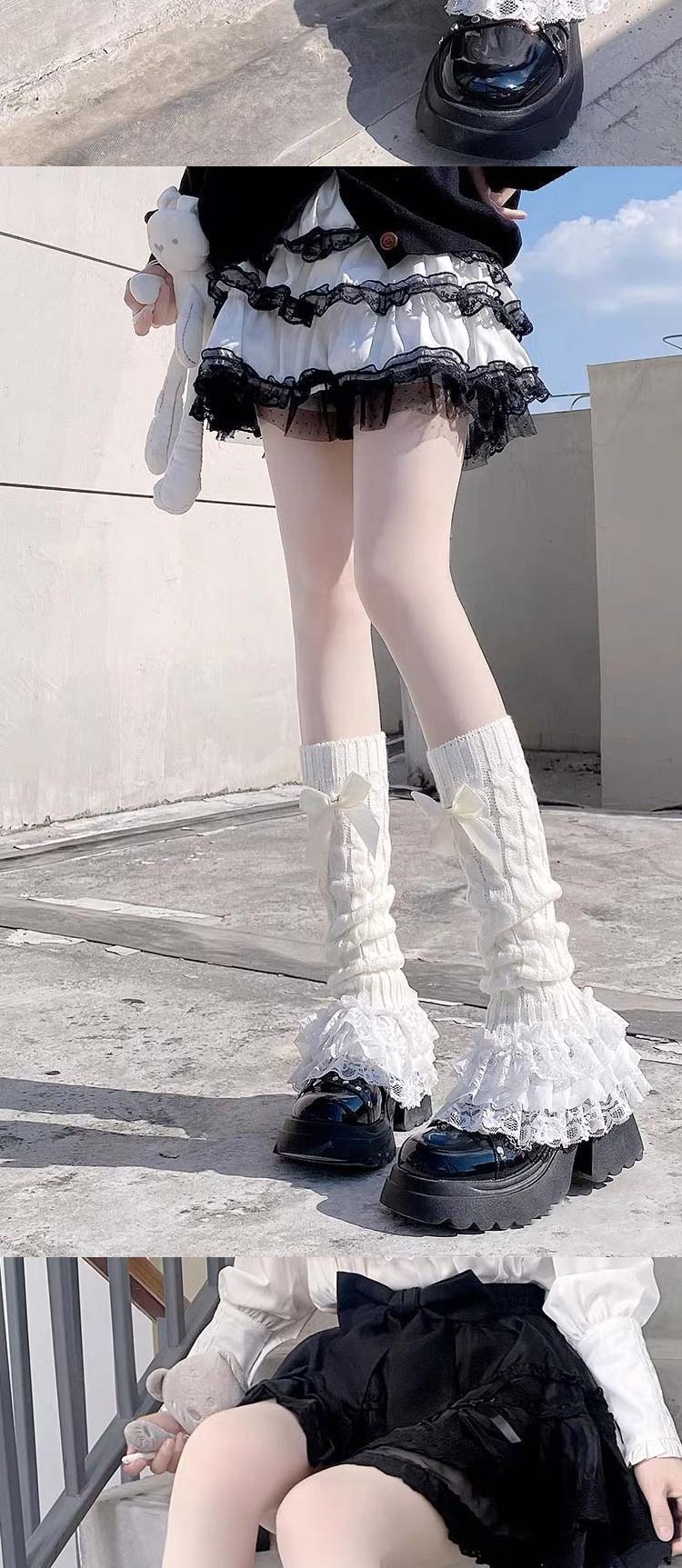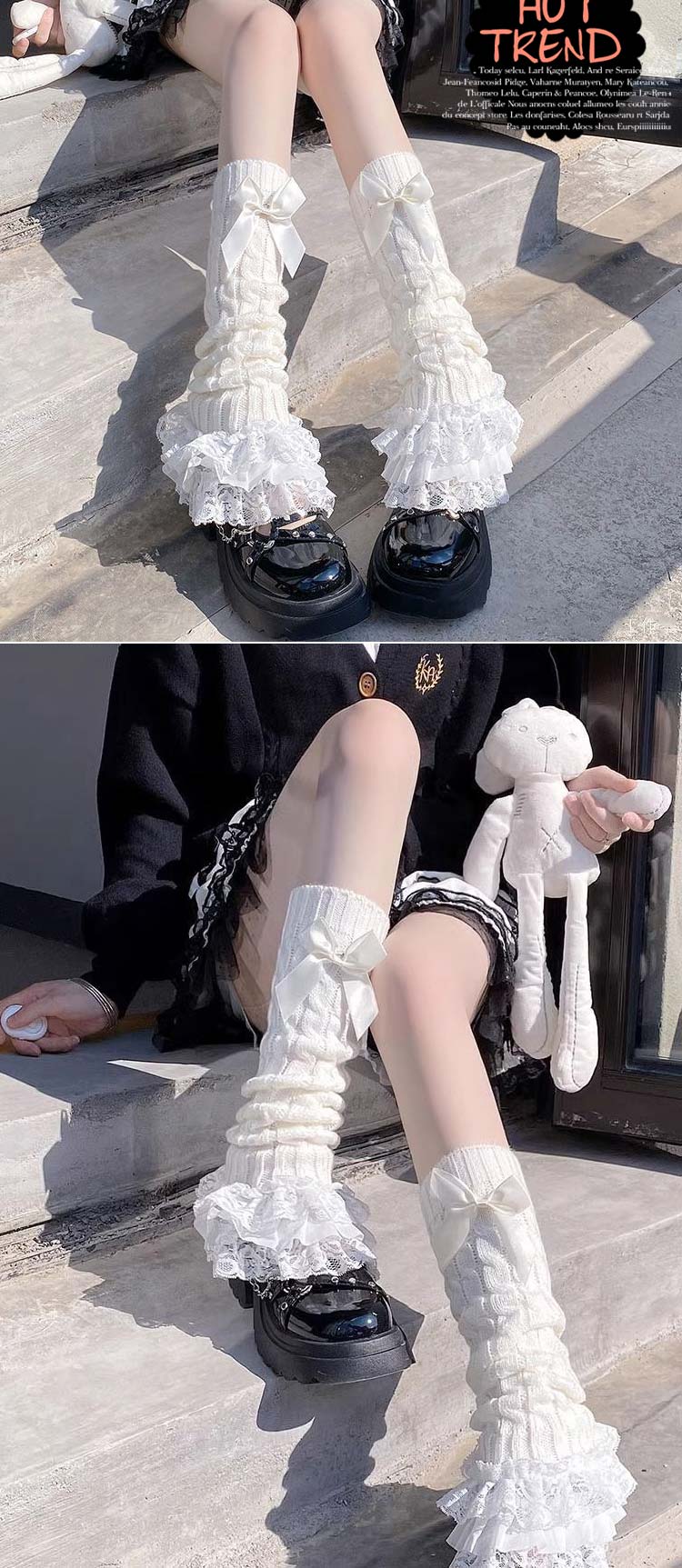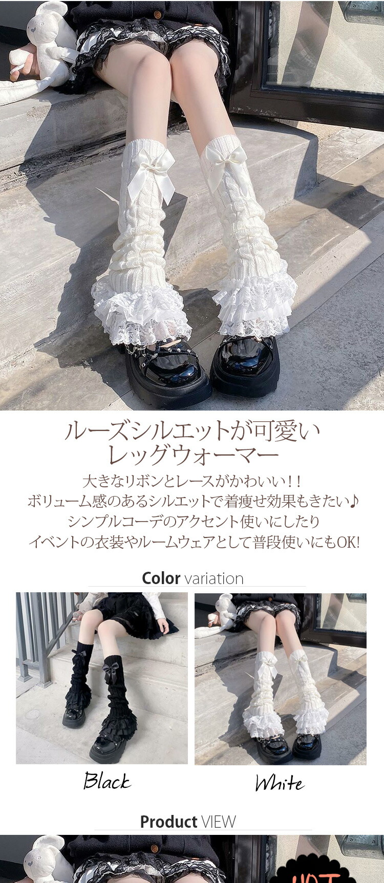 レッグウォーマー ニット レース フリ レディース 靴下 レッグウェア 靴下 豊富な品揃え ホワイト ブラック