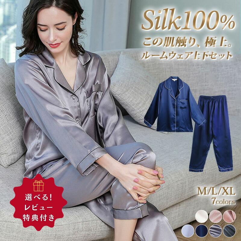 シルク パジャマ レディース シルク1 レディース ナイトウェア ルームウェア パジャマ 続々登場 ブラック ブルー くすみピンク グレー ネイビー ピンク ホワイト XL L M