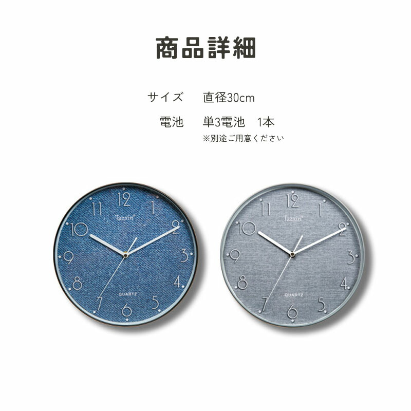 掛け時計 非電波時計 静音 おしゃれ ブルー グレー