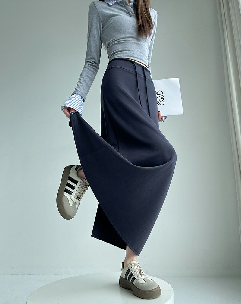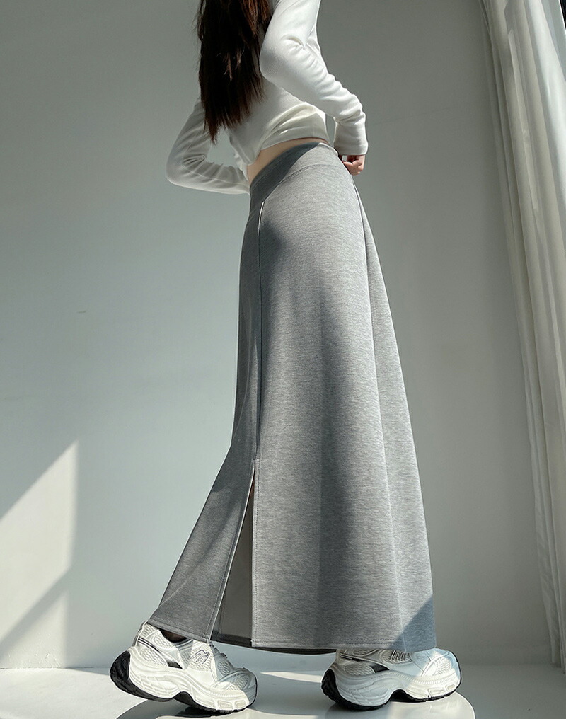スカート レディース スウェットスカート ロングスカート ボトムス スウェット ストレッチ フレア マキシ マキシスカート Iライン 無地 長い ゆったり ハイウエスト カジ バックスリット