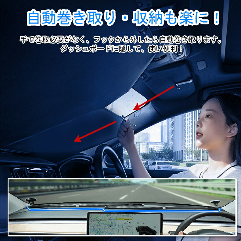車用 フロント 車 ロール式 伸縮 軽自動車 自動車 日除け ロールスクリーン ロール スクリーン サンシェード 遮光UVカット フロントシェード フロントガラスカバー 暑さ 日よけカーテン