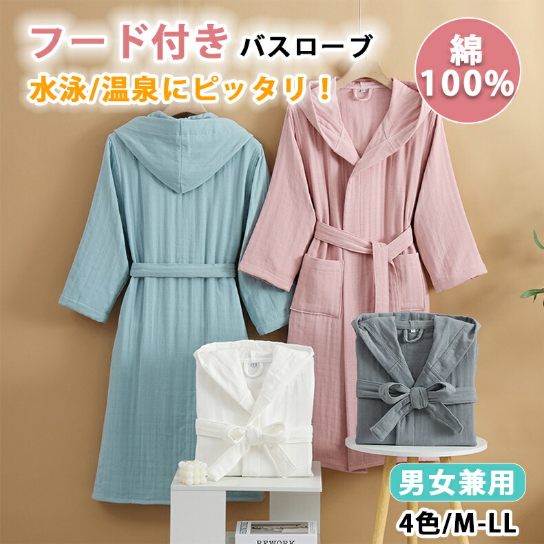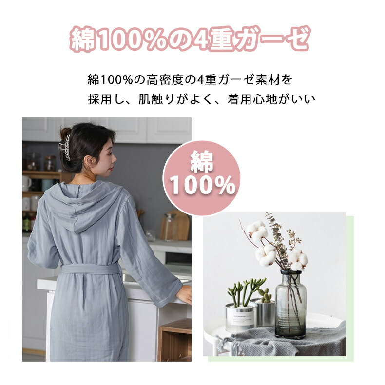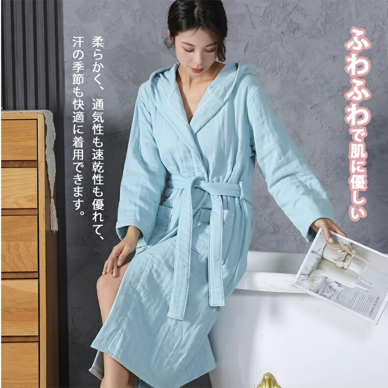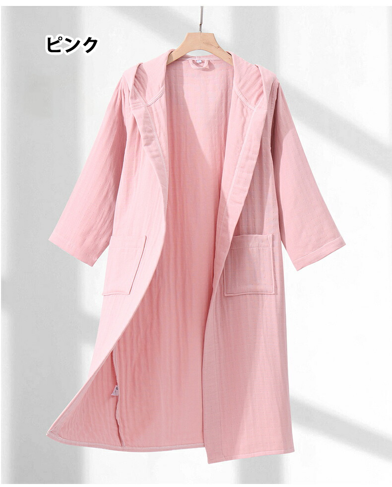 ガーゼコットン バスローブ がーぜ レ インナー 下着 ナイトウエア 続々登場 ピンク ホワイト ブルー グレー M L LL