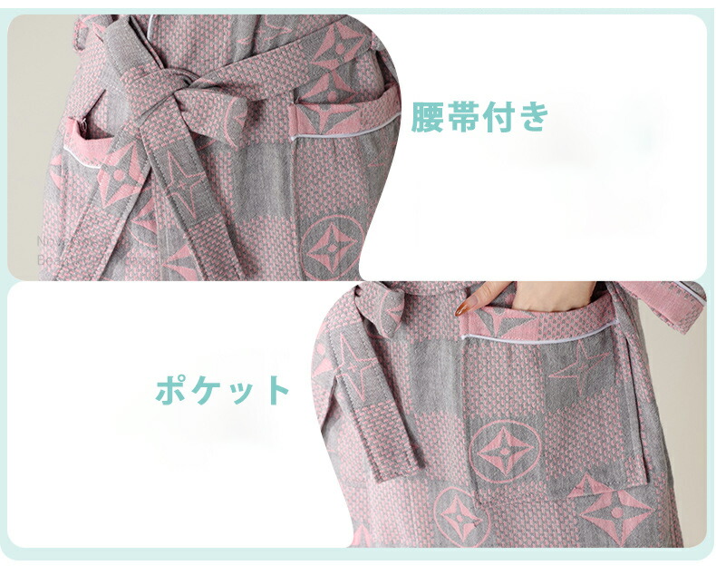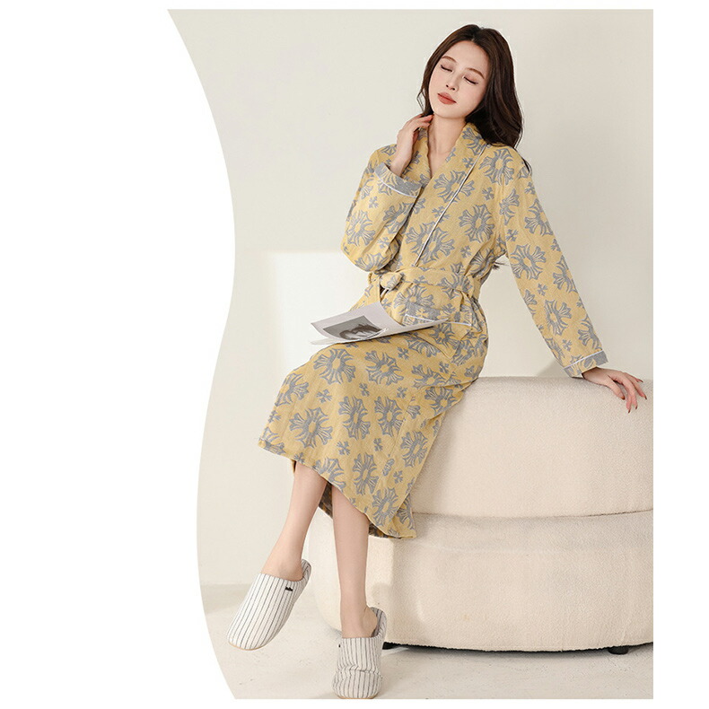 ガーゼコットン バスローブ がーぜ レ レディース ナイトウェア ルームウェア バスローブ 大人気! グレー+ピンク 青+イエロー イエロー ピンク グレー M L LL 3L