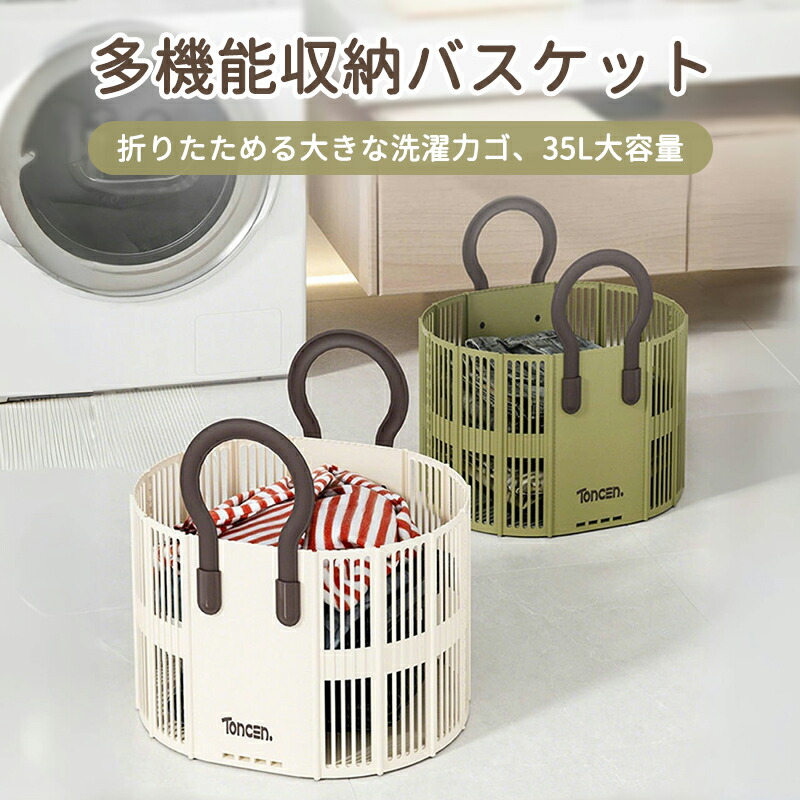 ランドリーバスケット 折りたたみ ラン ベージュ グレー グリーン ホワイト