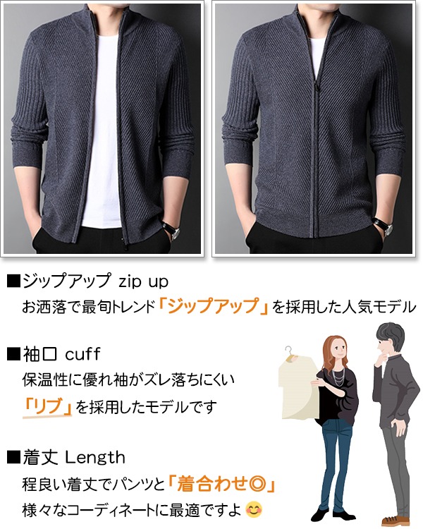 カーディガン メンズ ジップカーディガ トップス カーディガン 続々入荷中 ブラック グレー ダークブルー S M L 2L(XL) 3L(2XL)
