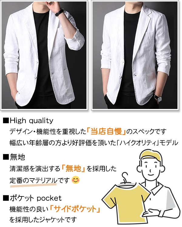 サマージャケット メンズ ジャケット コート ジャケット 新作 ブラック ホワイト ネイビー ベージュ ライトブルー XS S M L 2L(XL)