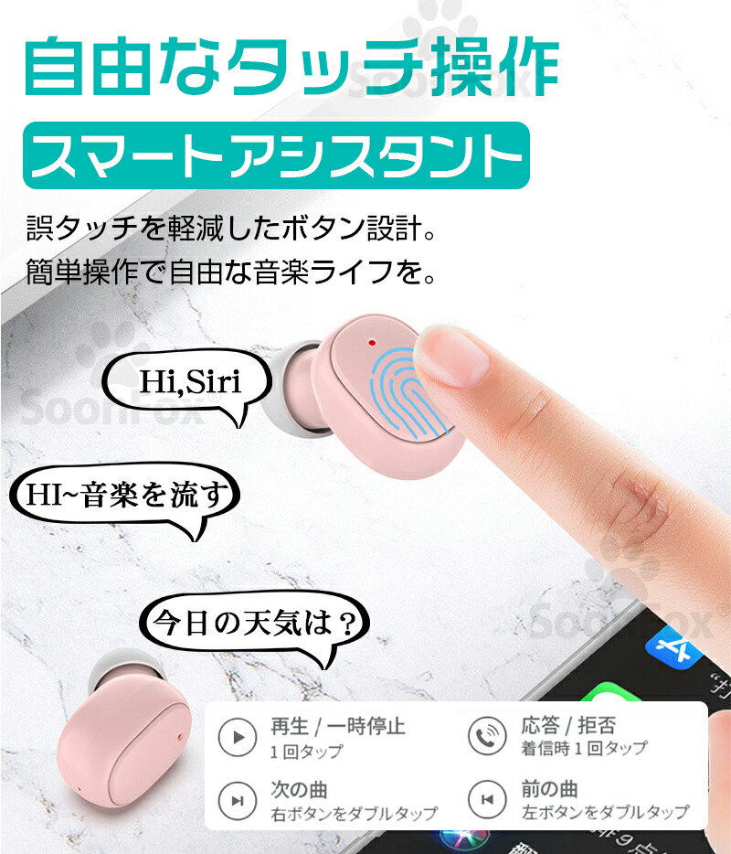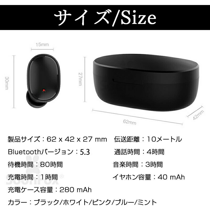 Bluetoothイヤホン ノイズキャ ブラック ホワイト ピンク ブルー ミント