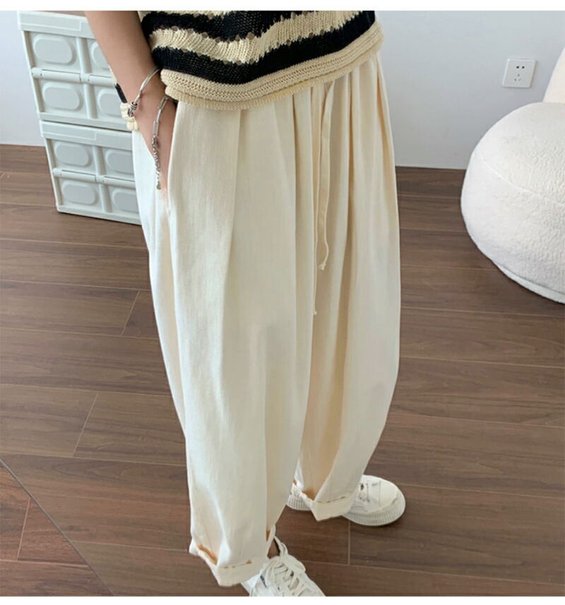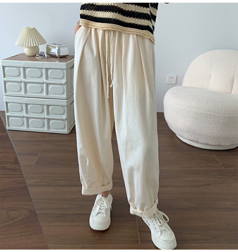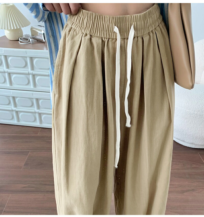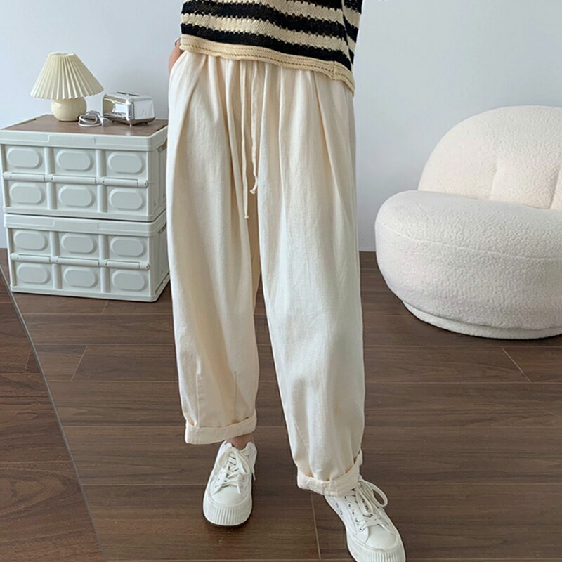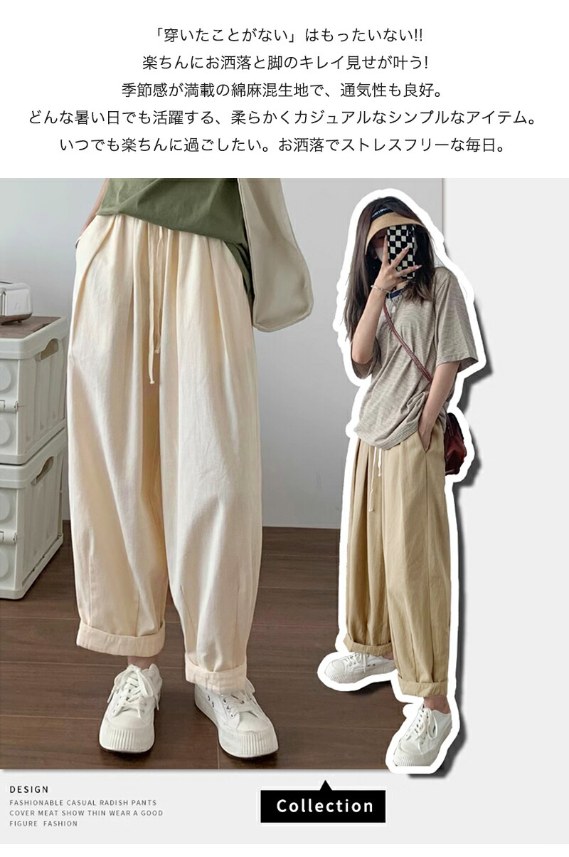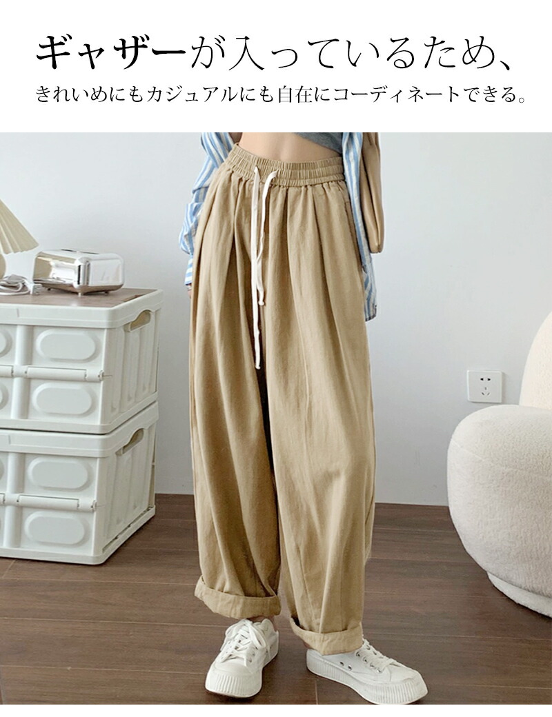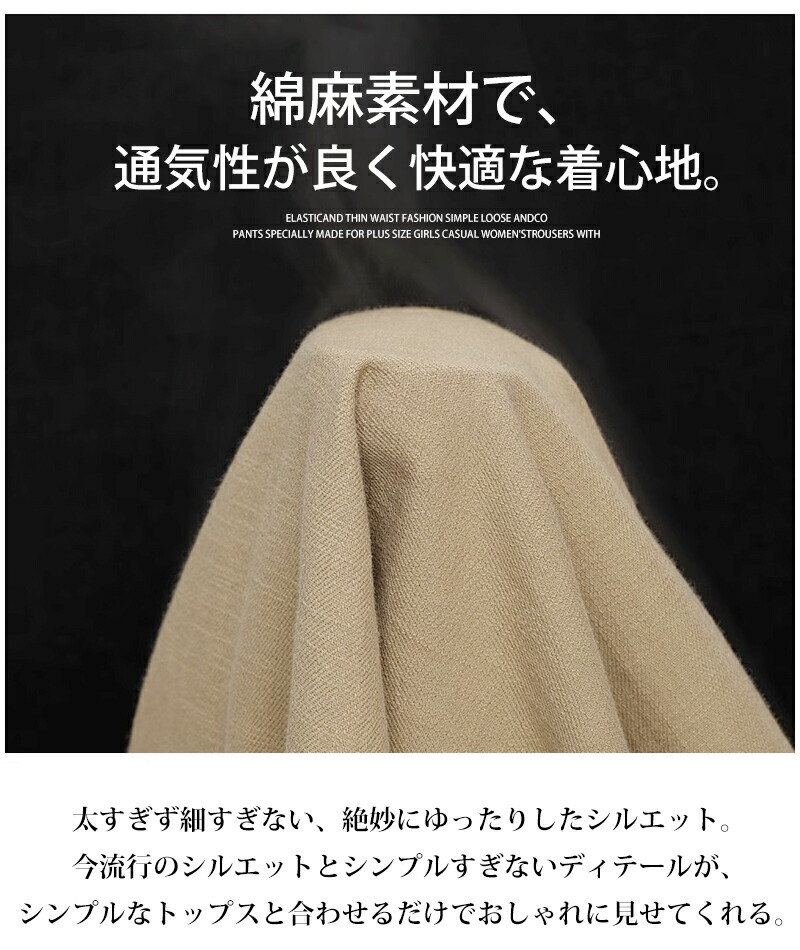 ワイドパンツ レディース きれいめ 春 夏 大きいサイズ ウエストゴム パンツ イージーパンツ 涼しい 綿麻 リネン ボトムス コットン リラックス シンプル ゆったり 体型カ ルーズ