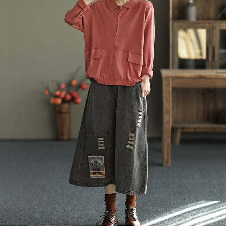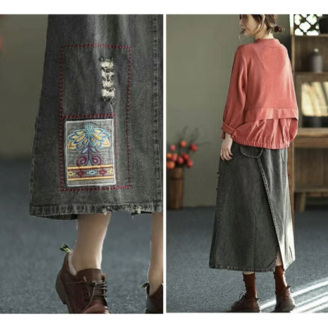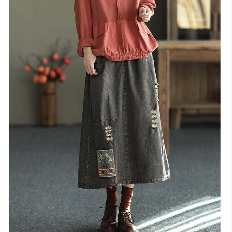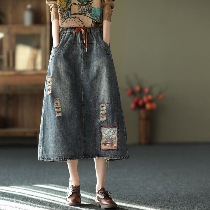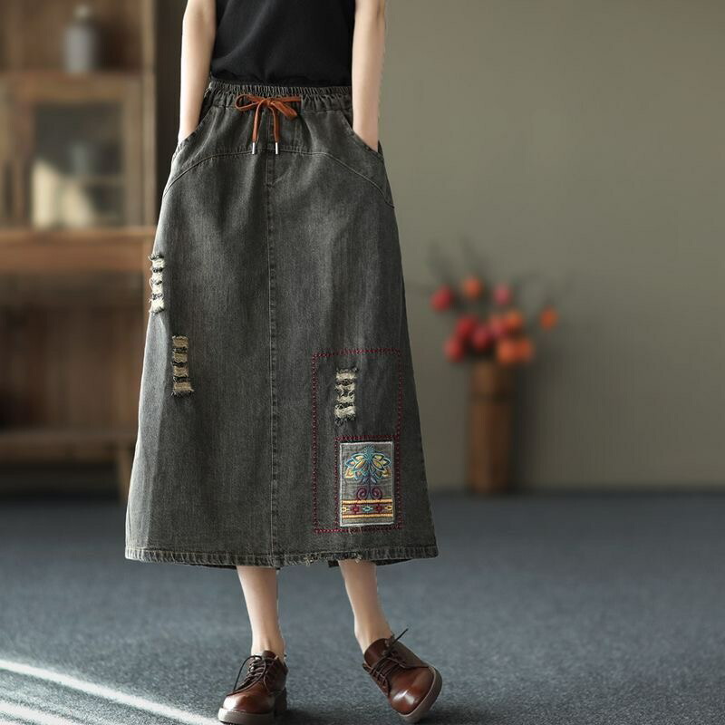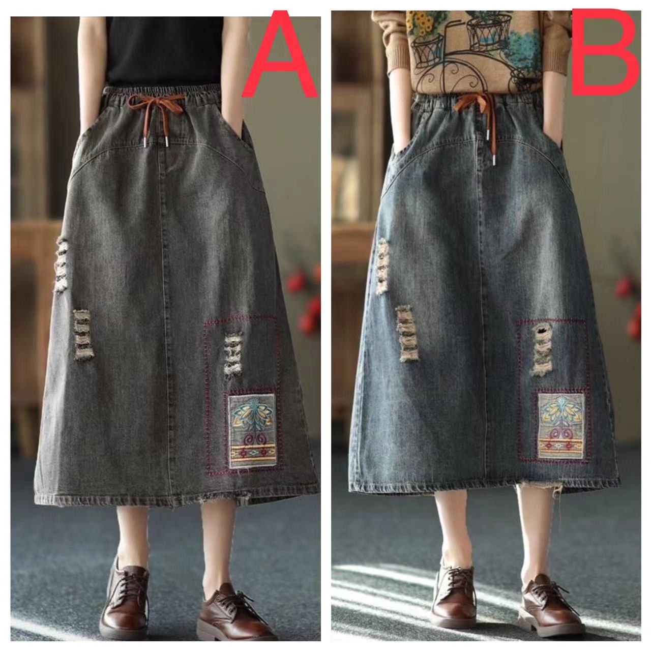デニムスカート レディース ダメージ加 レディースファッション 通販 ブラック ブルー M L XL 2XL