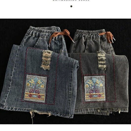 デニムパンツ ビジュー付き