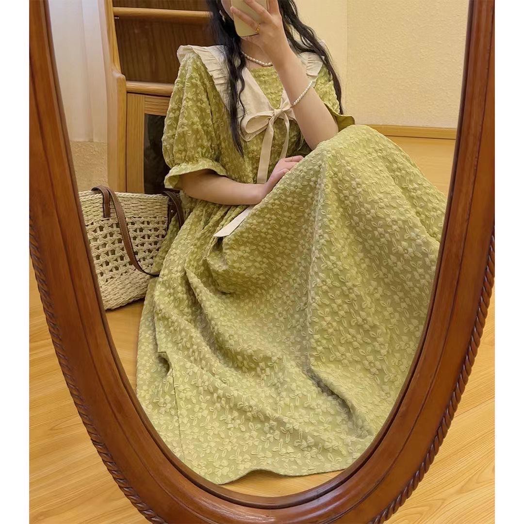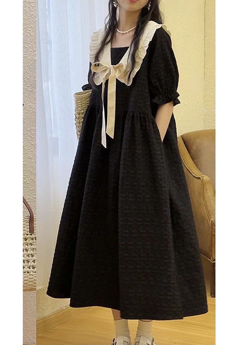 レディース ロングワンピース 夏 襟付 ワンピース 続々登場 イエロー ブラック M L XL 2XL 3XL 4XL