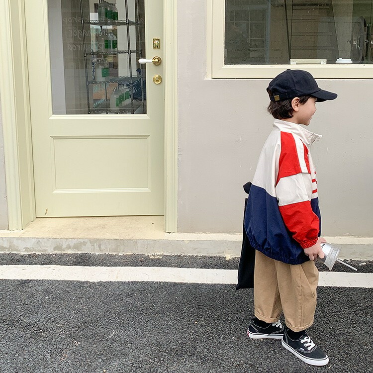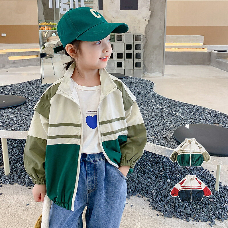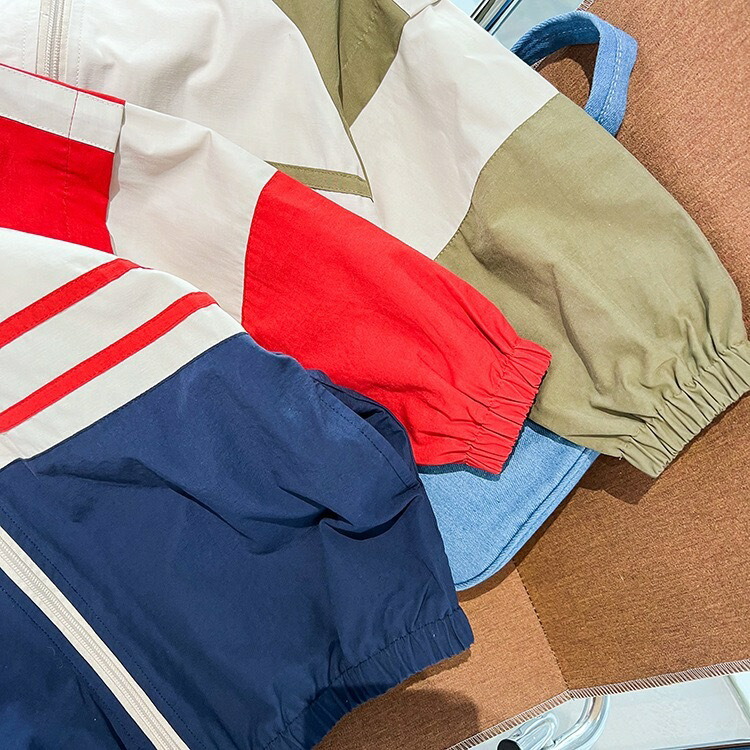 キッズウインドブレーカー 子供服 男女 キッズ コート ジャケット 続々登場 レッド×ネイビー グリーン×カーキ 80cm 90cm 100cm 110cm 120cm 130cm 140cm