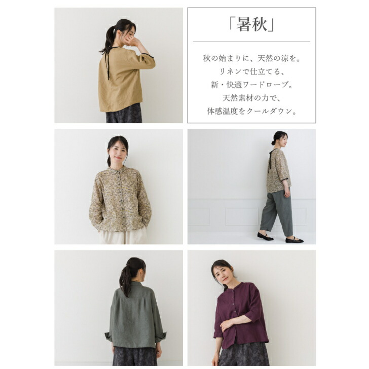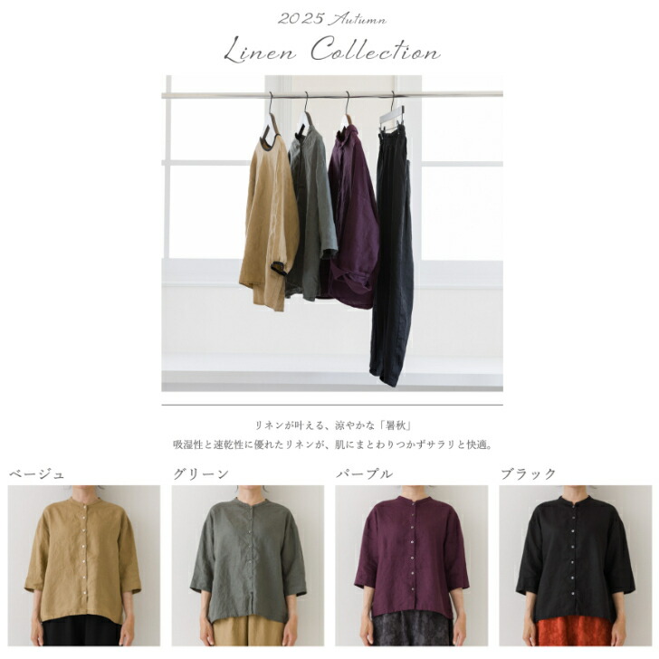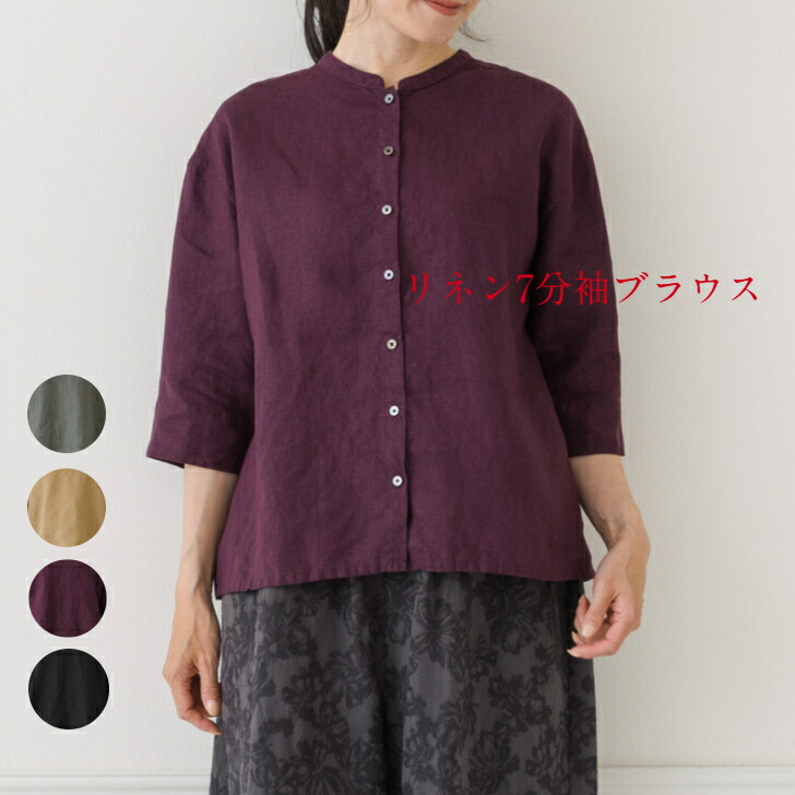 リネンブラウス レディース ブラウス トップス シャツ ブラウス 続々登場 ベージュ グリーン パープル ブラック