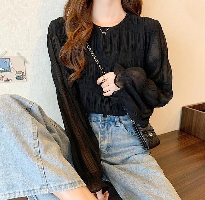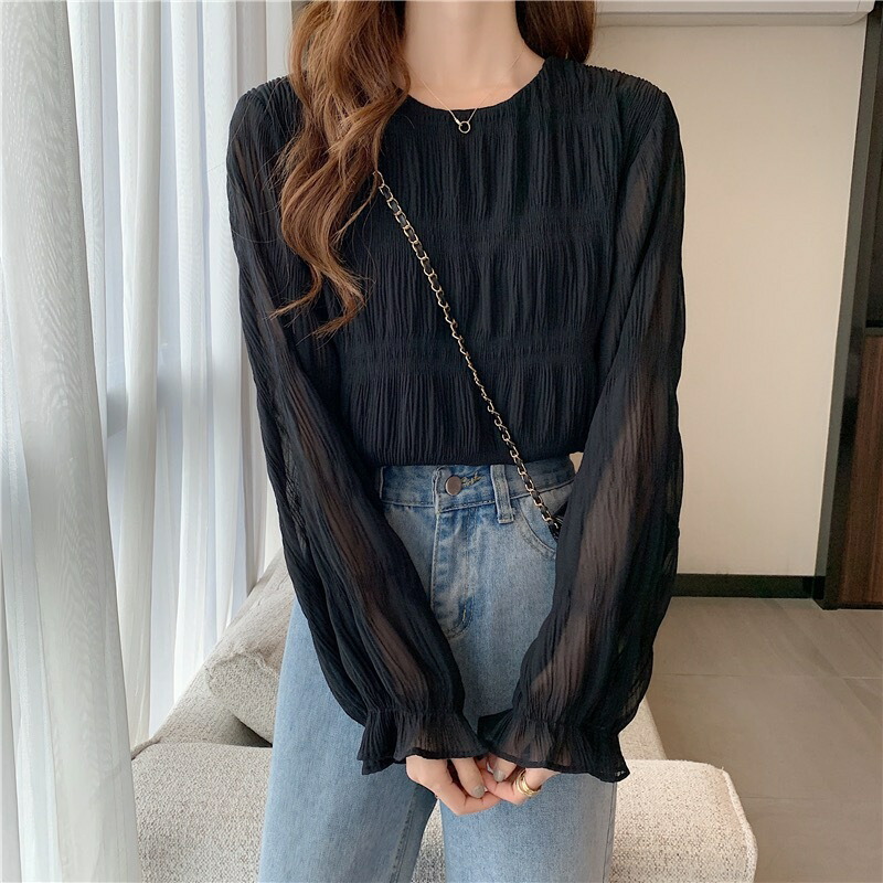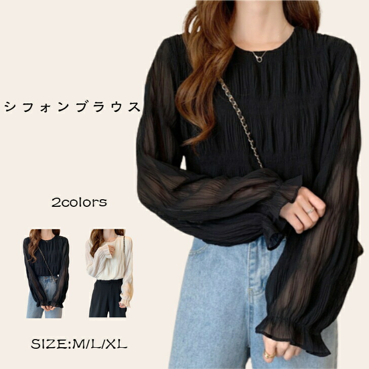 シフォンブラウス シアーブラウス ボリューム袖