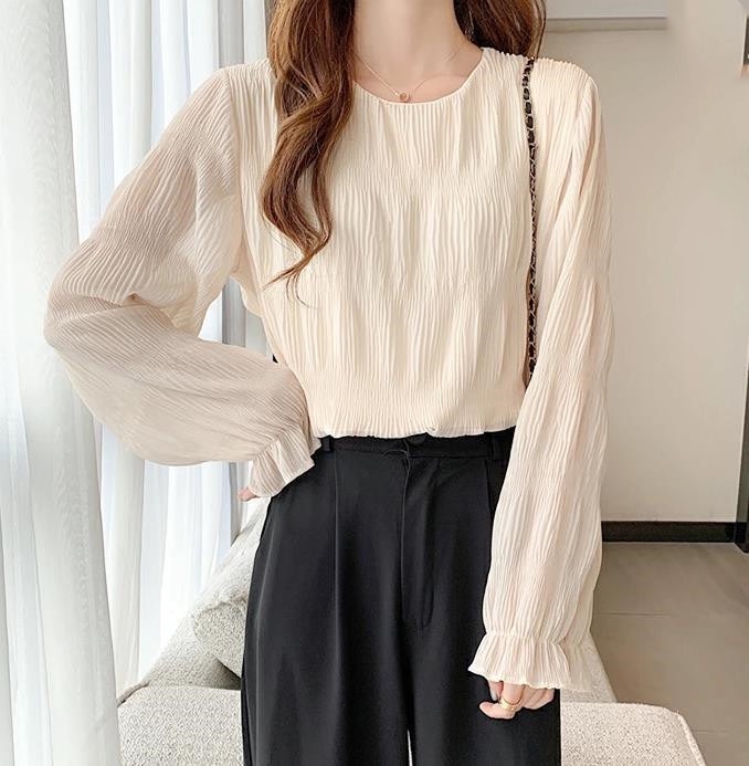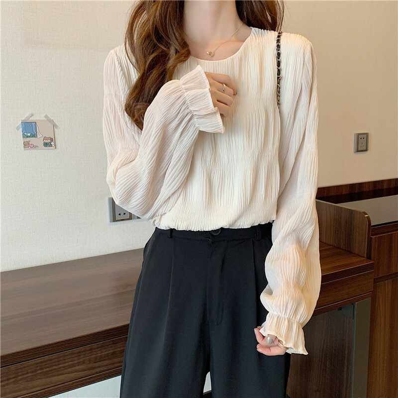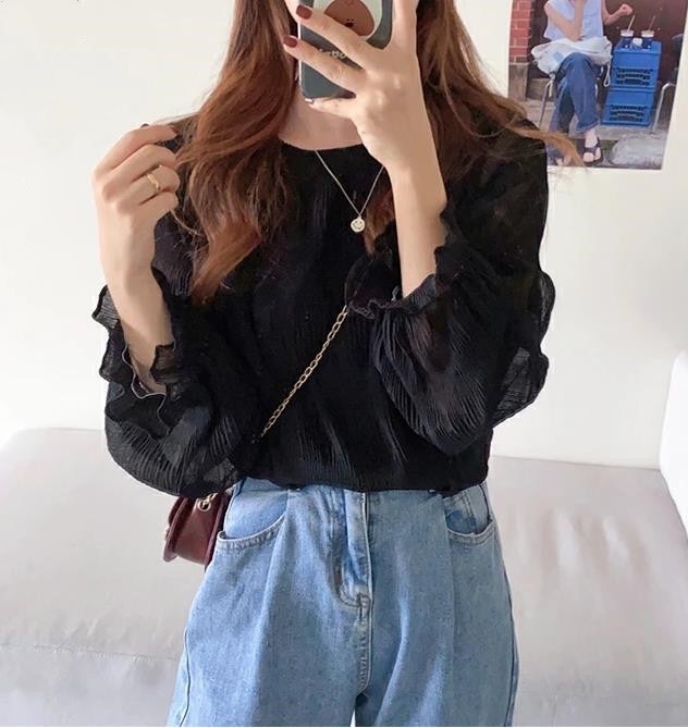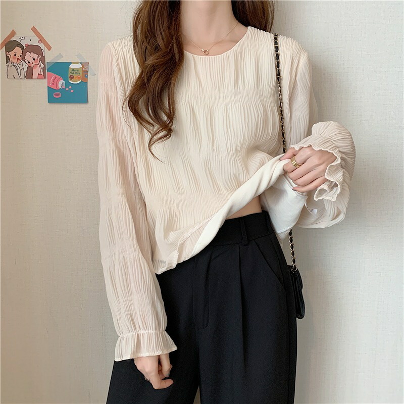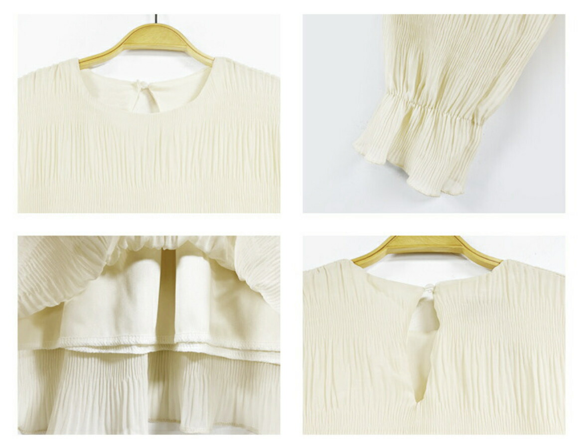 ブラウス シフォン シャーリング ギャ トップス シャツ ブラウス 新登場! ベージュ ブラック Mサイズ Lサイズ XLサイズ