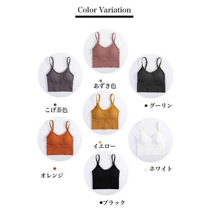 バックオープンブラトップキャミソール インナー 下着 ナイトウエア 新登場! ブラック ホワイト グリーン オレンジ イエロー こげ茶色 あずき色 フリーサイズ プラスサイズ