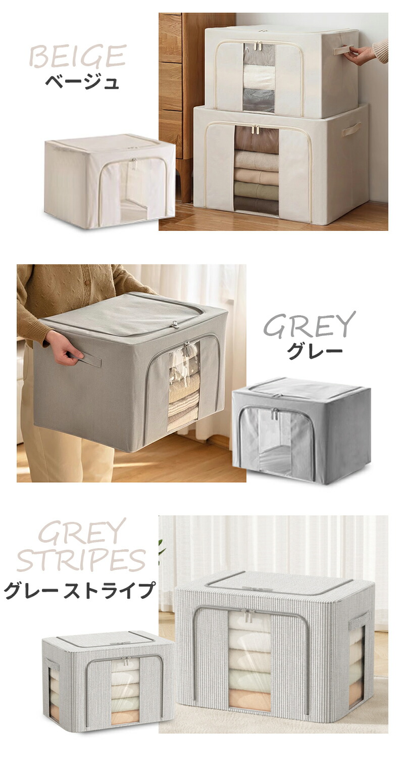 クローゼット収納 収納ボックス クロー ベージュ グレー グレー ストライプ 24L(40*30*20cm) 66L(50*40*33cm) 100L(60*42*40cm)