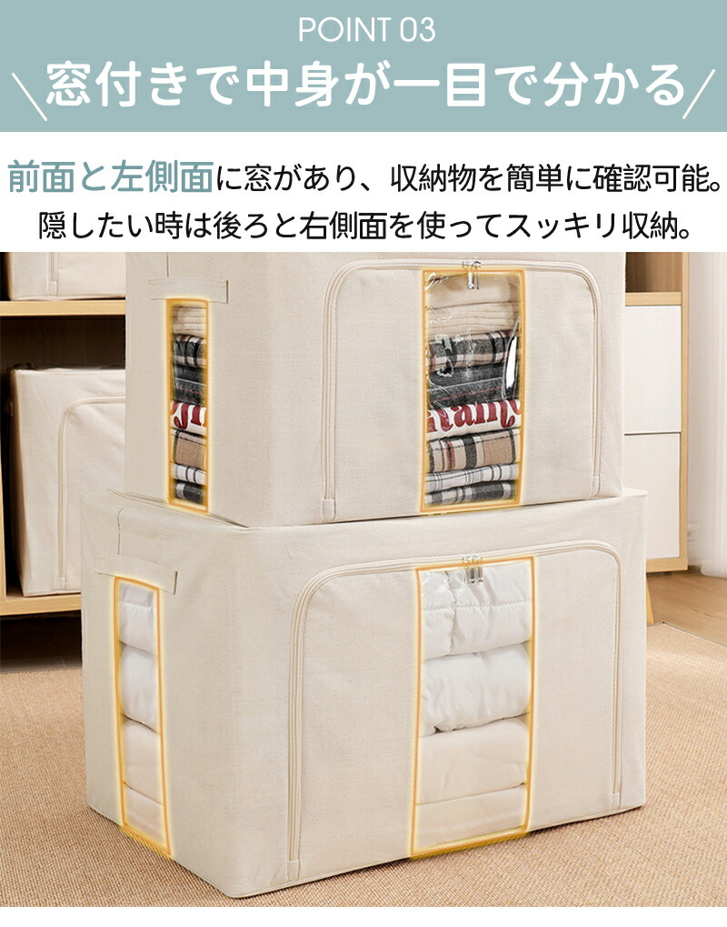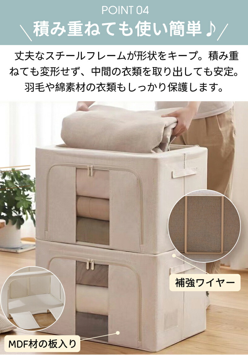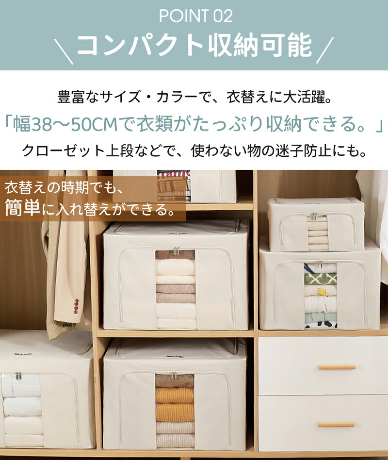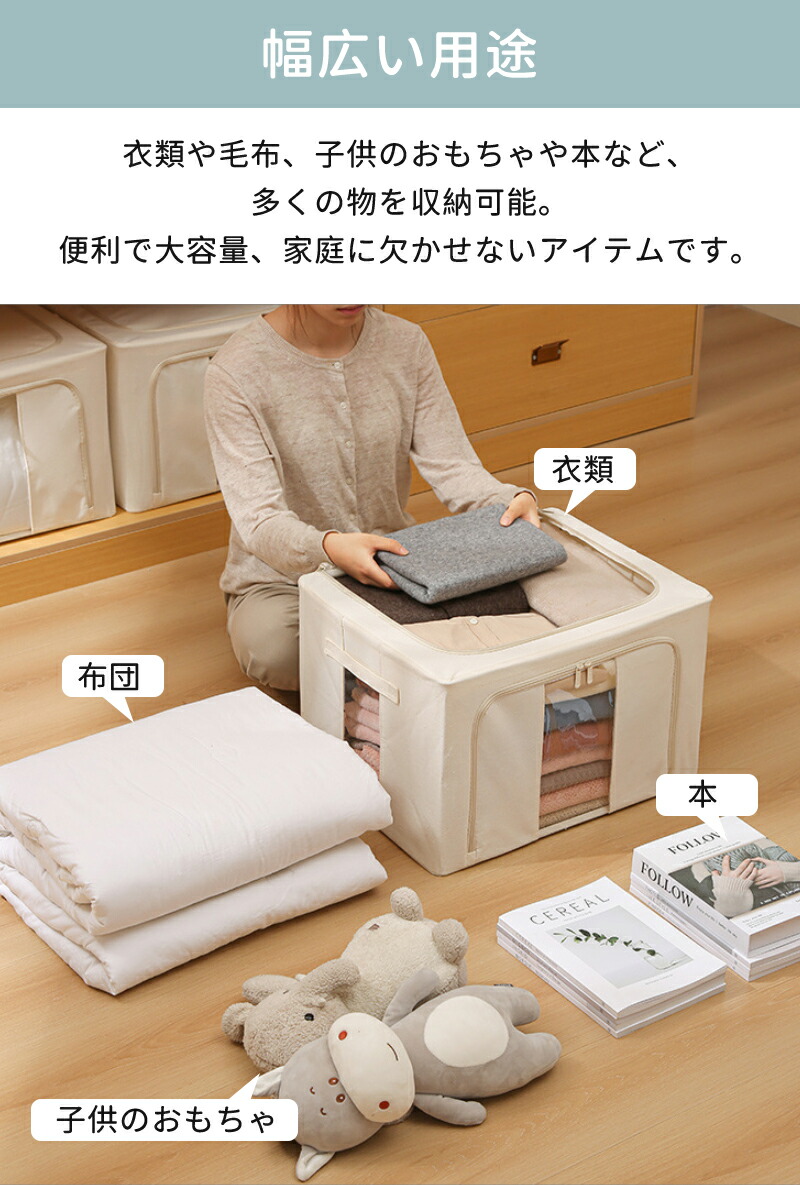 収納ボックス 66L 衣類収納 収納ケース ボックス Lサイズ 衣類収納袋 布 布製 折りたたみ 大容量 フタ付き おしゃれ 省スペース コンパクト 押し入れ 洋服収納ボックス 布団 おもちゃ 衣類収納 整理 前開き