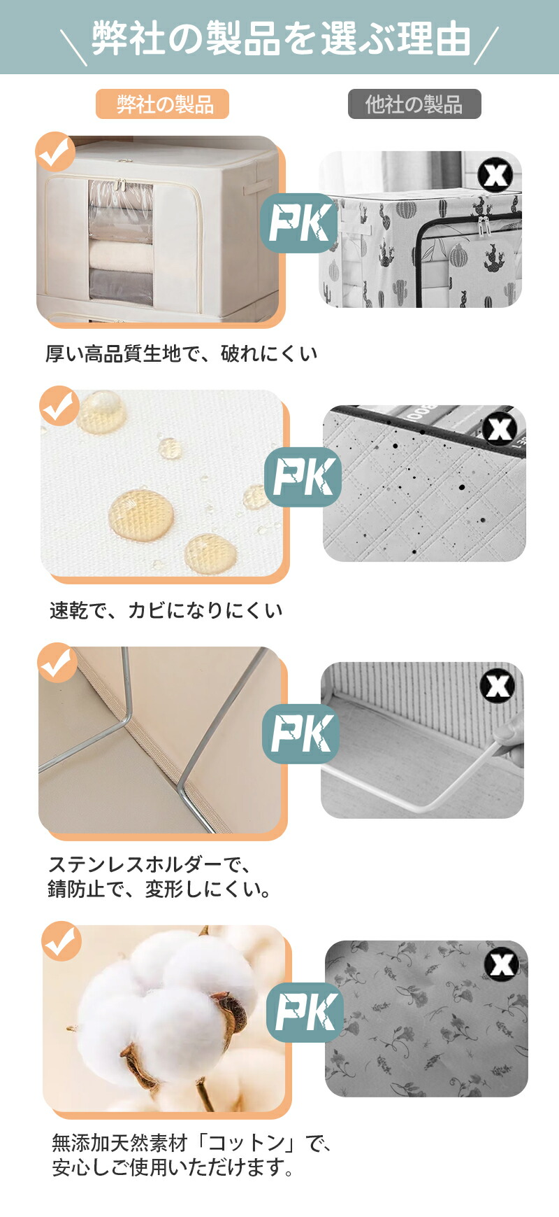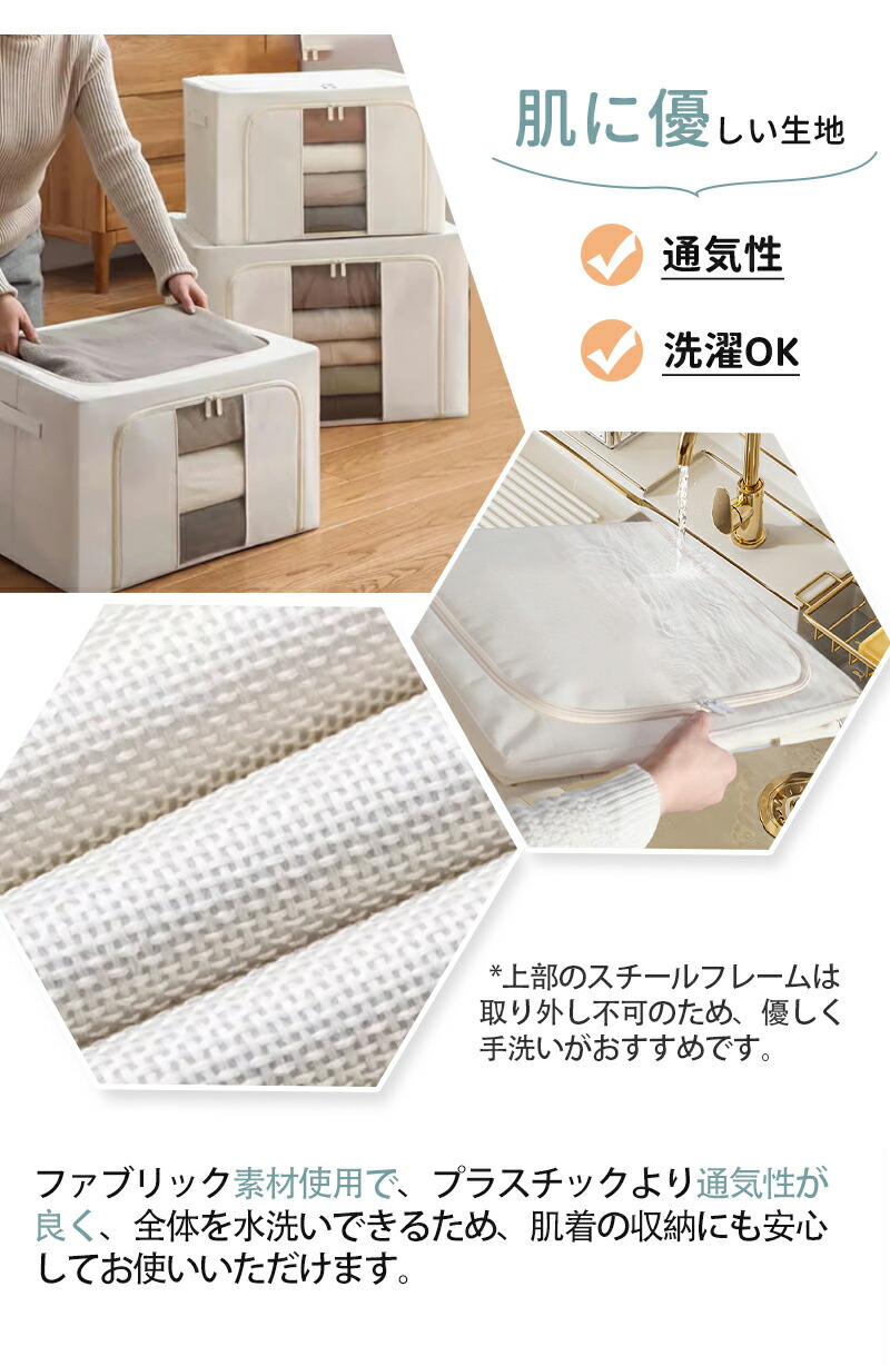 -丸ごと洗濯可:汚れても水洗い可能で、肌着の収納にも安心。スチールフレームが固定されているため、手洗いがおすすめ。
