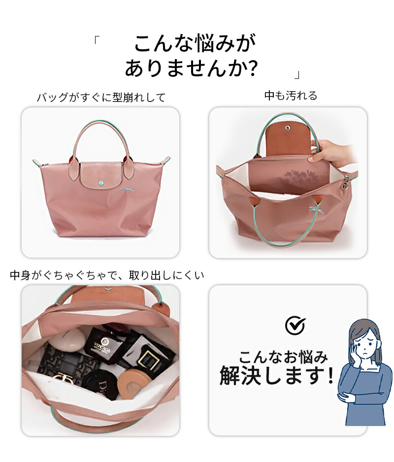 高品質バッグインバッグ ロンシャン バッグ ロンシャンバックインバック インナーバッグ バッグオーガナイザー 超軽量 自立 高級バッグ専用 整理整頓 形崩れ防止 ファスナー Bag in Bag 大きめ小さめ 収納 抜群 洗える仕切り整理