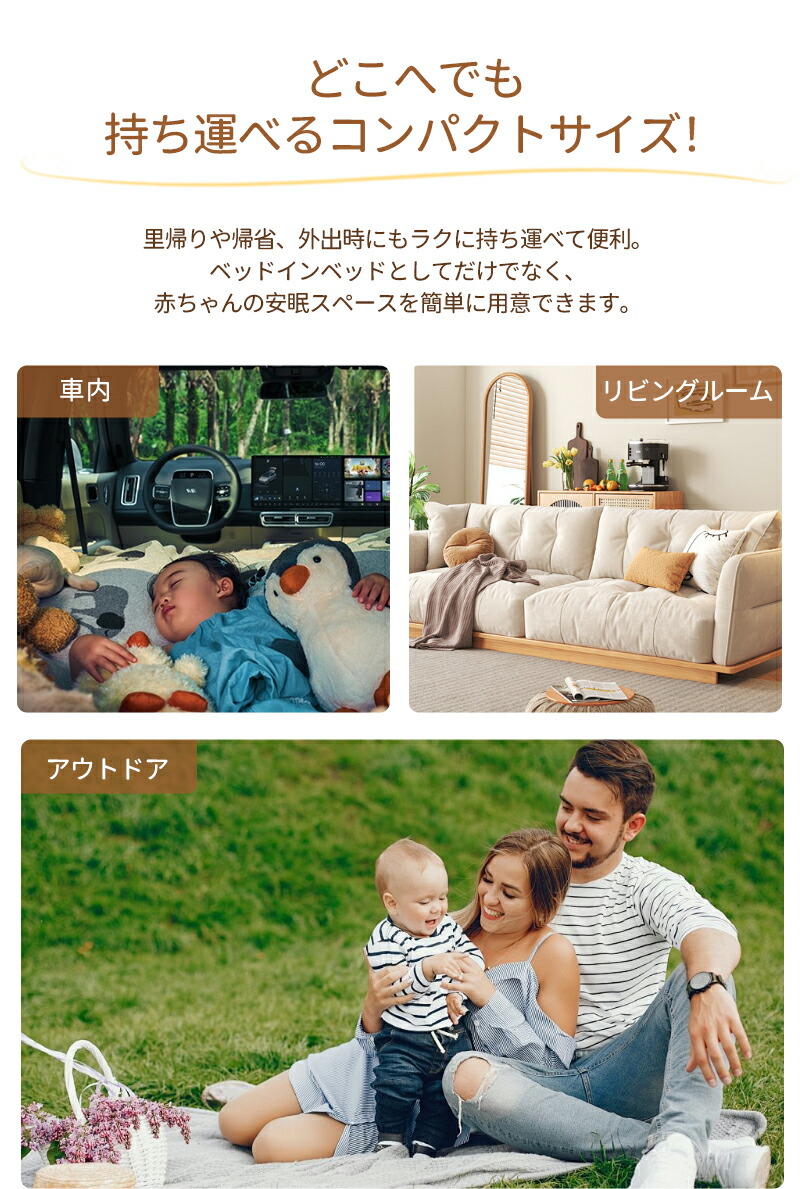 ベッドインベッド コンパクト 新生児 ベビーベッド 持ち運び 折り畳み クーファン ベビー用品 クーファ クーハ ビー 添い寝 育児用品 女の子 寝かしつけ 寝返り防止 赤ちゃん