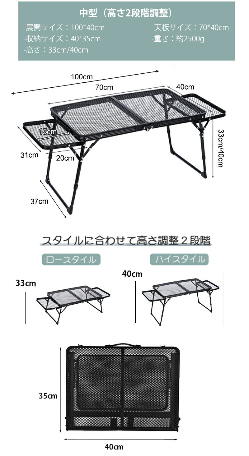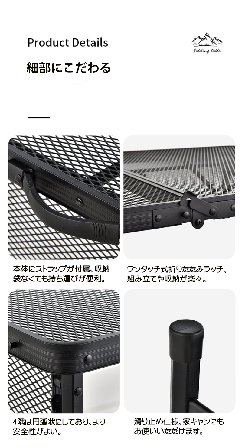 アウトドア テーブル 耐荷重40kg 収納袋付き 二つ折り メッシュテーブル 軽量 折りたたみテーブル アルミテーブル レジャーテーブル 折り畳みテーブル おしゃれ スチールラック アウトドア スチール キャンプ用品 ランキング バーベキュー BBQ 家族