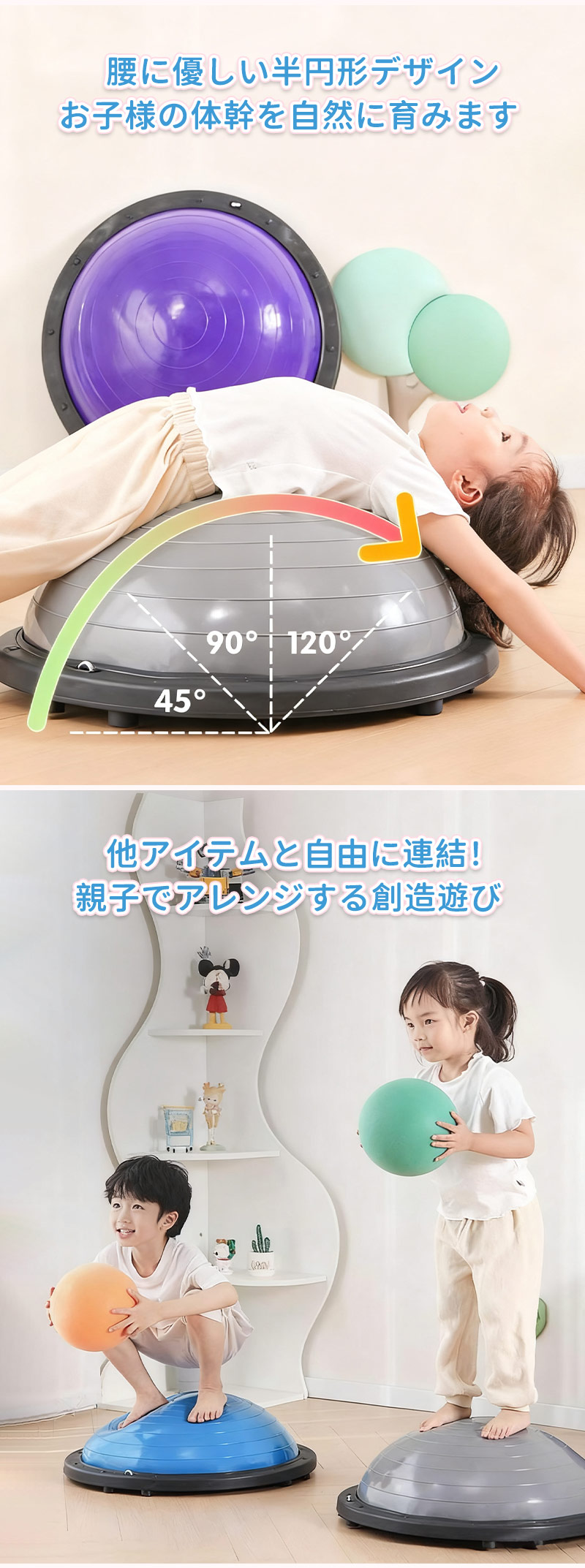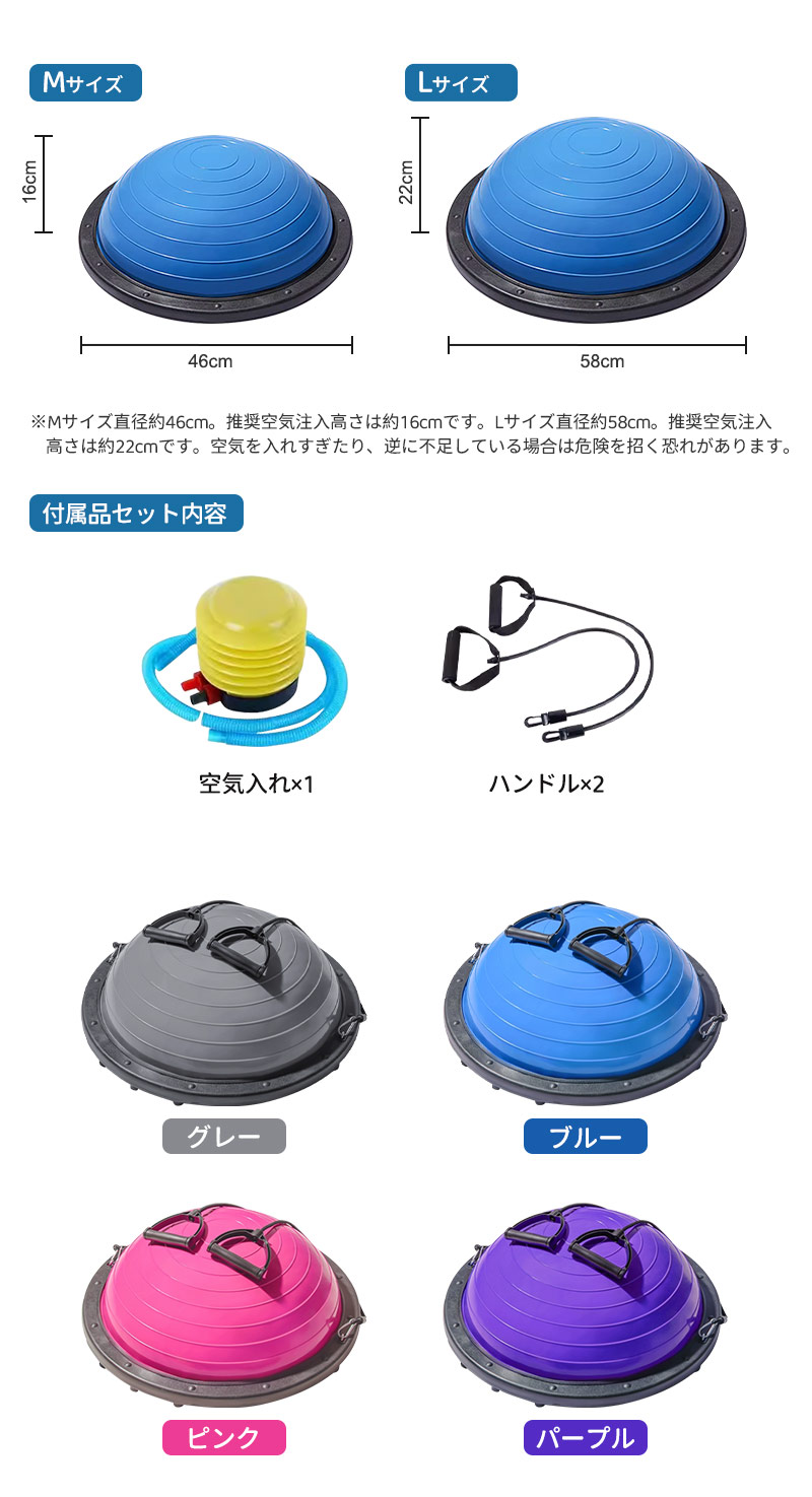 バランスボール 46cm 58cm 子 グレー ブルー ピンク パープル M (直径46cm/子ども用) L (直径58cm/子ども大人兼用)