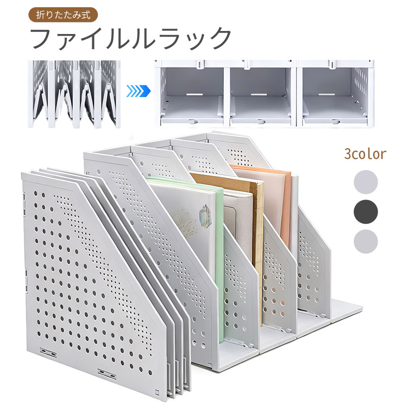 ファイルボックス A4 折りたたみ式 文房具 事務用品 机上収納 整理用品 ブックスタンド 続々登場 ホワイト グレー 三つ折り 四つ折り