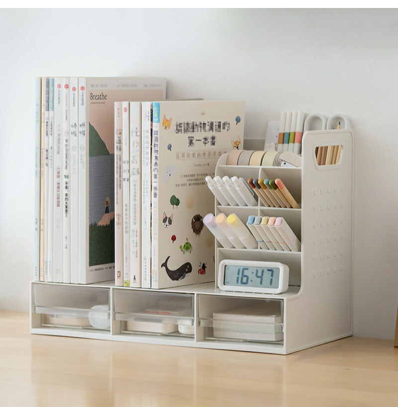 ファイルボックス 卓上 卓上収納 ブッ 文房具 事務用品 机上収納 整理用品 ブックスタンド 超目玉商品 ペン立てタイプ ブックスタンドタイプ ホワイト 透明ケース ピンク ブルー