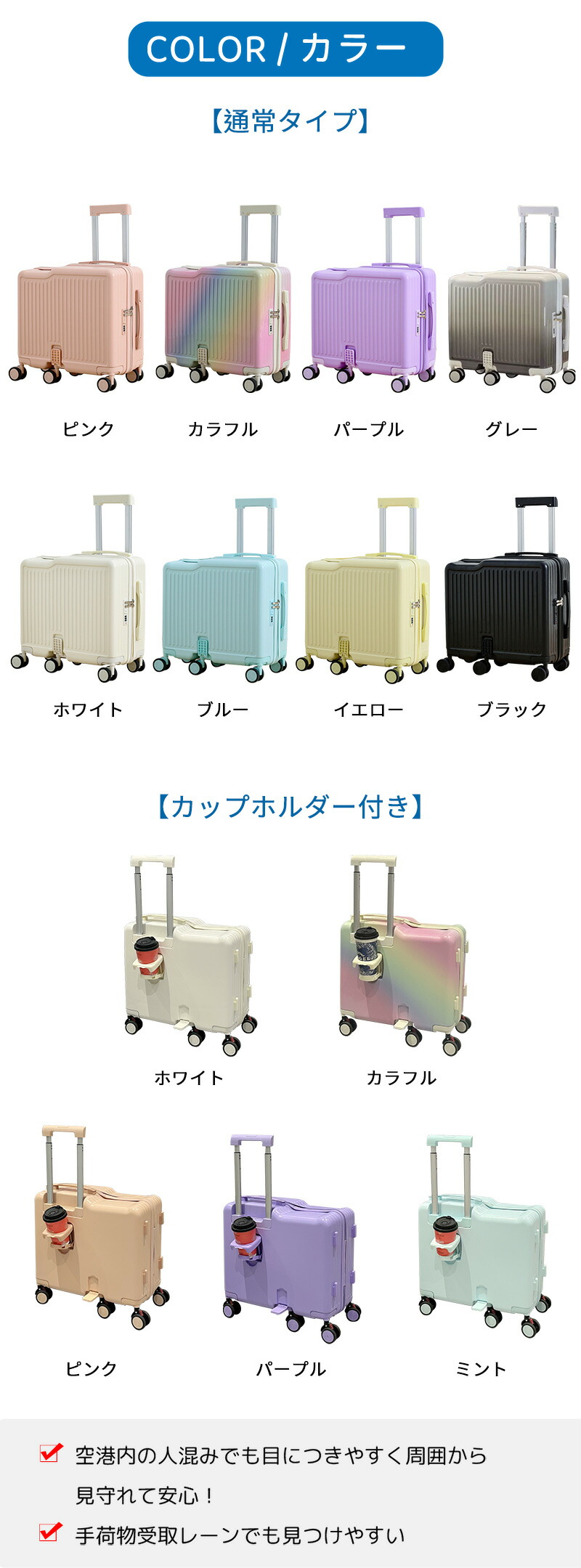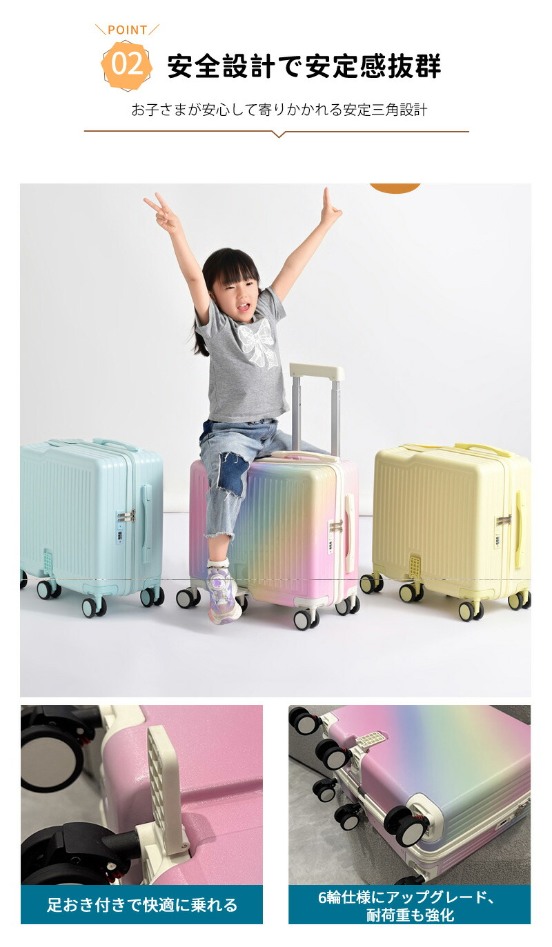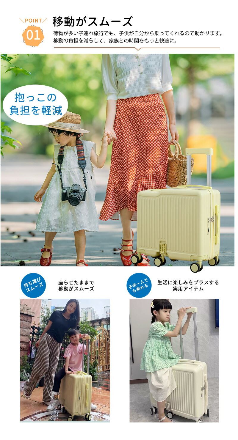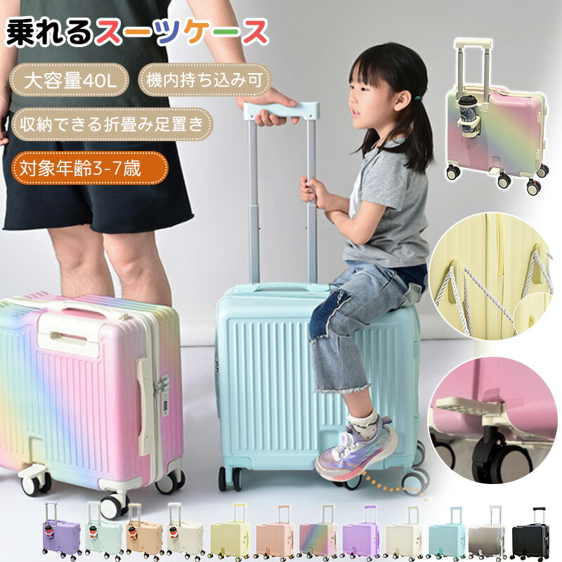 子供用 キャリーケース 乗れる キッズ キッズ バッグ ランドセル スーツケース キャリーバッグ 通販 通常タイプ カップホルダー付き ホワイト ブルー ピンク カラフル イエロー パープル ブラック グレー ミント