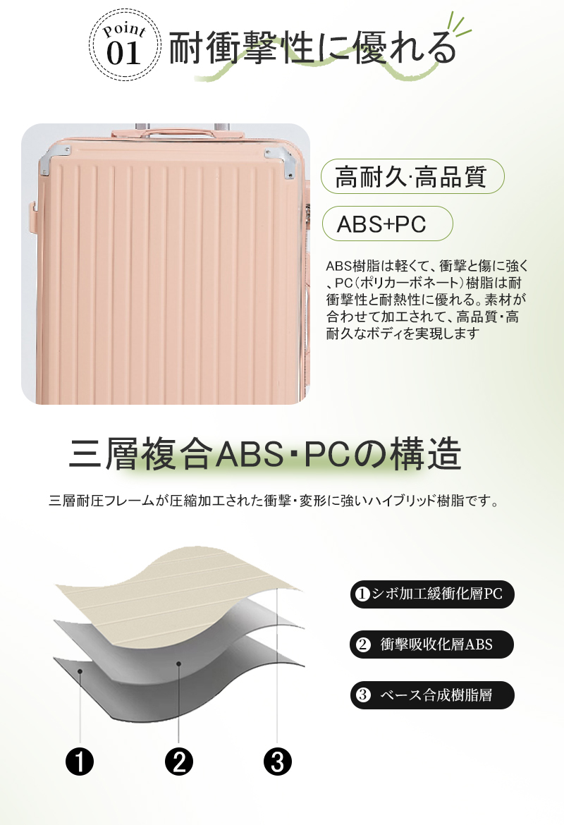 ABS+PC混合材質、エンボス加工、耐衝撃性に優れ